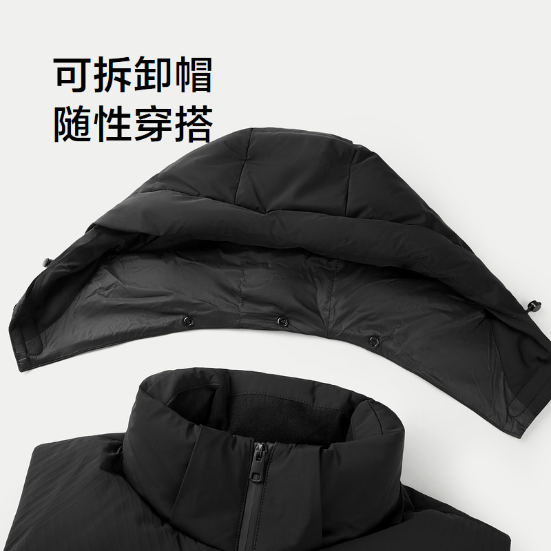 天猫HLA/海澜之家可拆卸帽羽绒服纯色石墨烯蓄热保暖撞色字母马甲男
