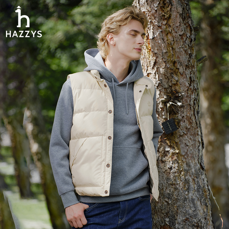 天猫Hazzys哈吉斯奥莱男装秋季新品男士保暖鸭绒羽绒马甲背心男潮流