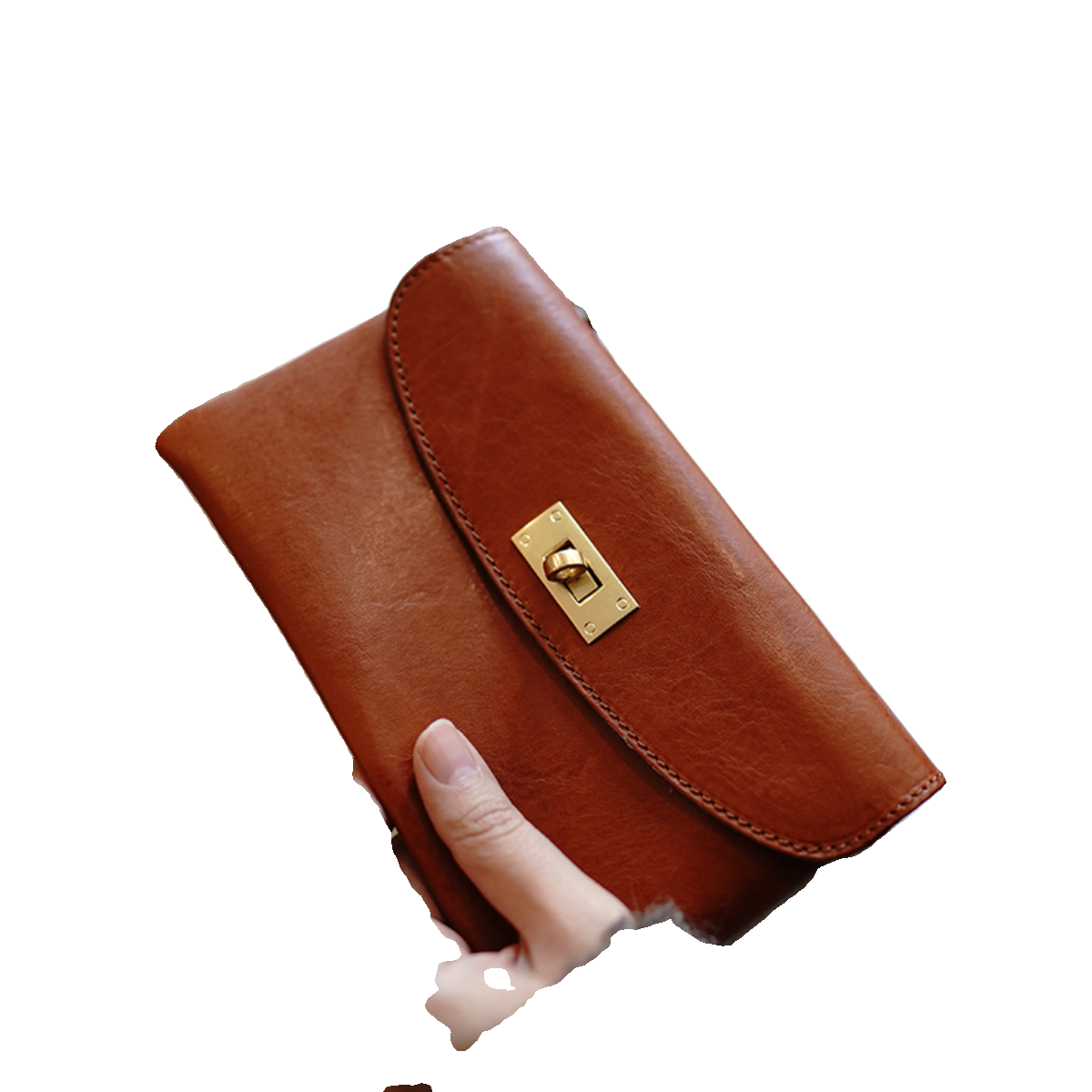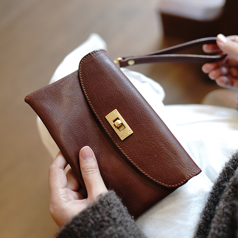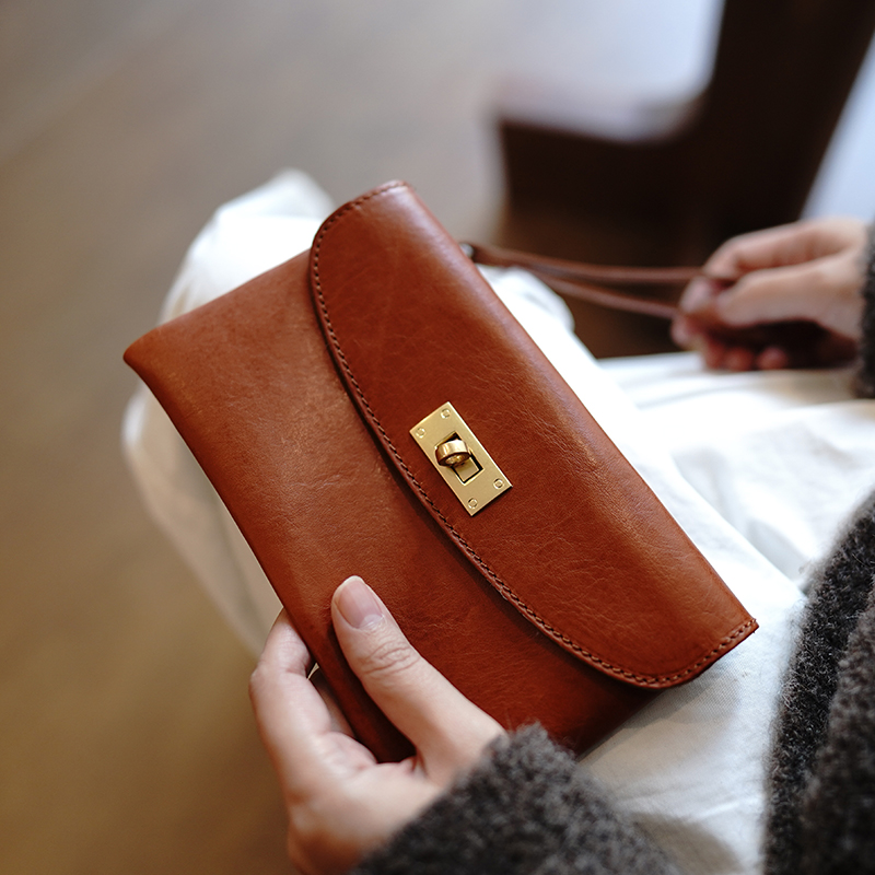 淘宝鹿小姐植鞣牛皮复古简约大容量锁扣钱包真皮证件手机收纳手拿包
