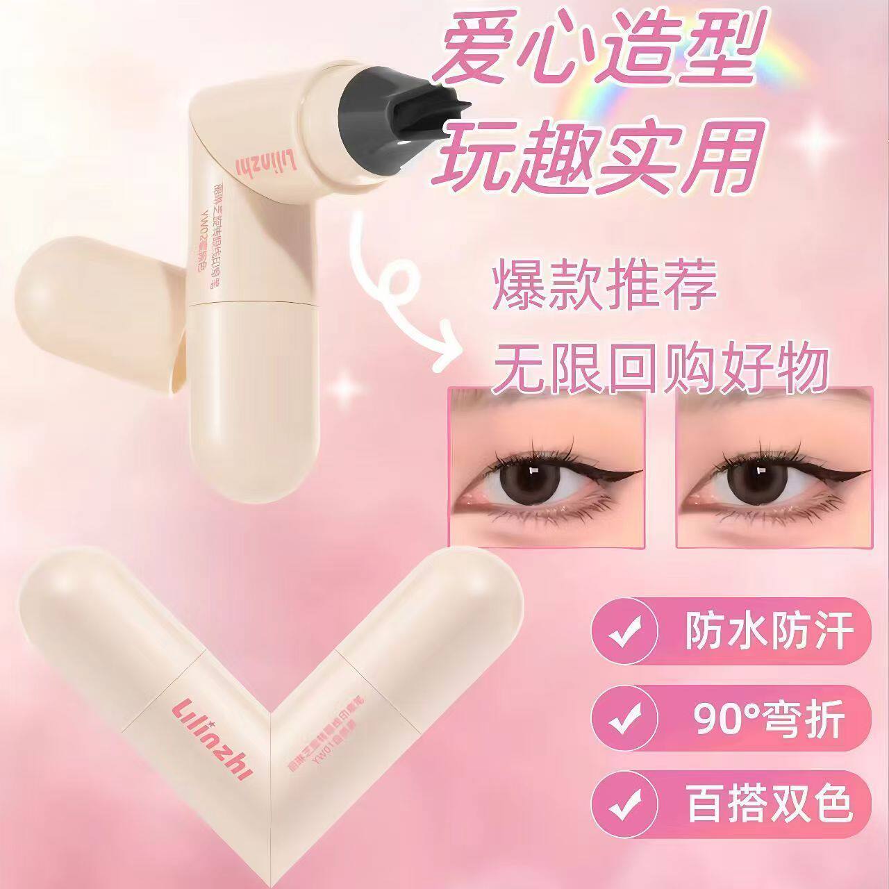 淘宝丽琳芝旋转眼线印章笔自然持久防水防汗一印成型双头眼线印章速干