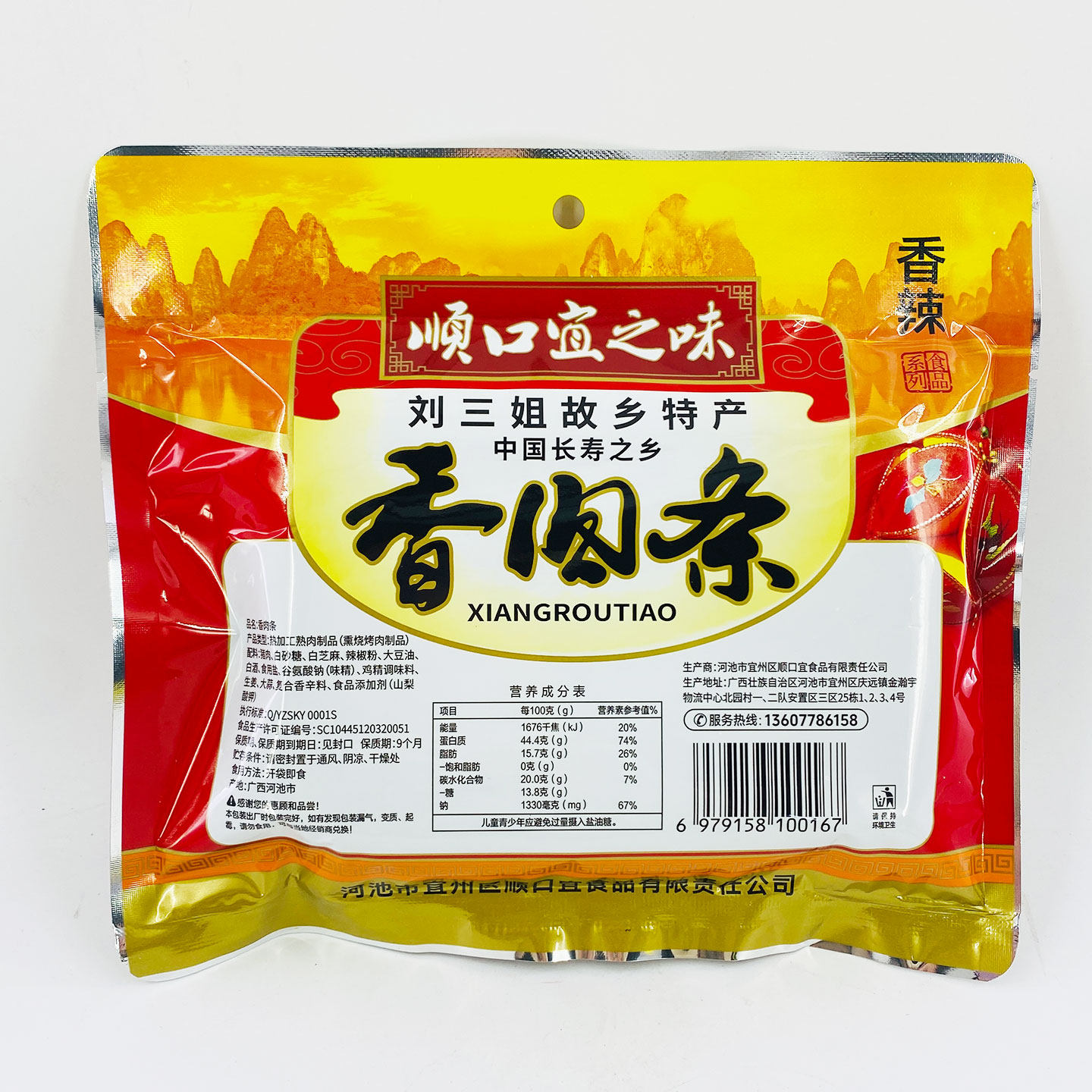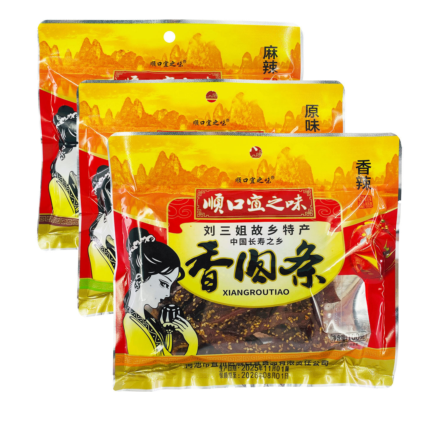 淘宝顺口宜之味香肉条100gx2袋刘三姐故乡特产香辣麻辣原味猪肉干肉条