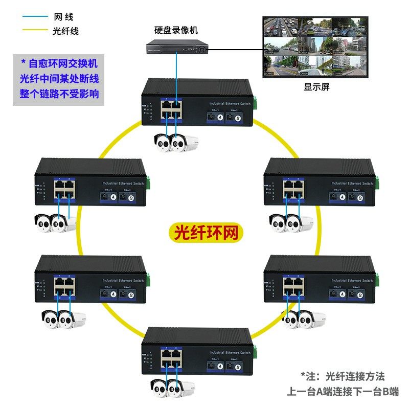 天猫拓轩工业级全千兆2光4电环网交换机导轨式环网自愈2光8电光纤收发器4口POE供电交换机