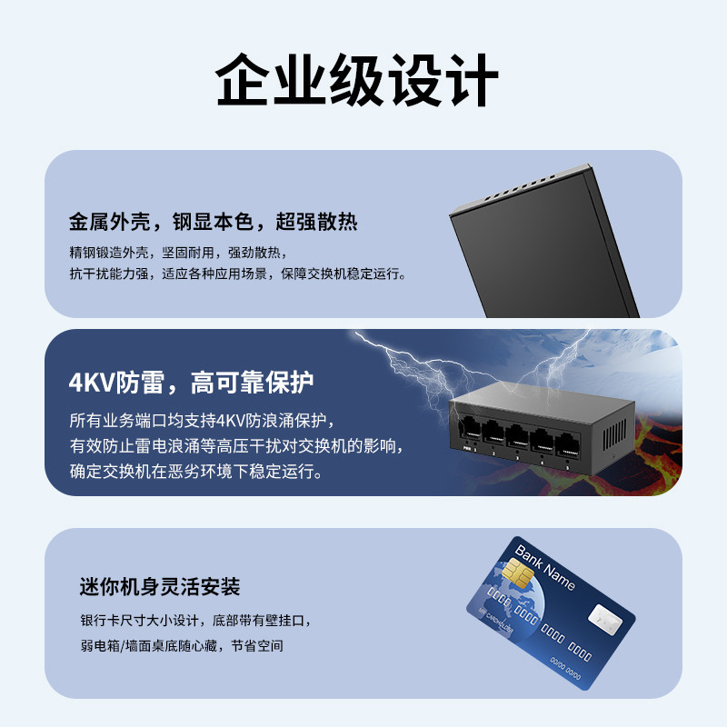 天猫FT光必达 网络交换机千兆5口百兆8口16口24口以太网交换机工业级网线集合分流学校宿舍专用监控扩展器
