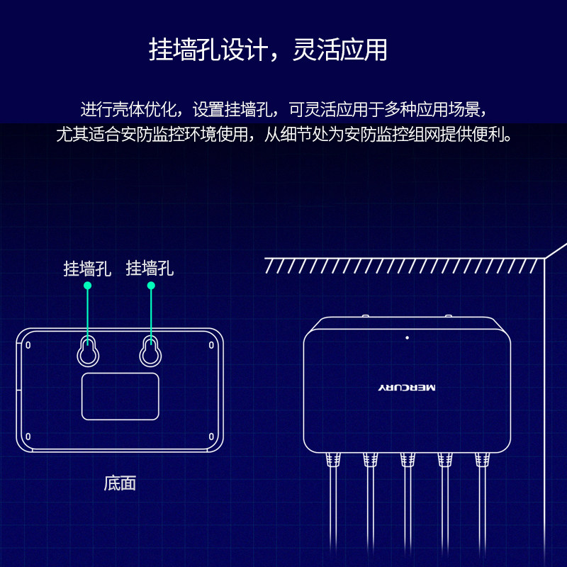 天猫MERCURY水星 MCS1105M 5口百兆安防监控交换机 安防监控网络交换器4口 塑壳壁挂弱电箱 网线分线集线器