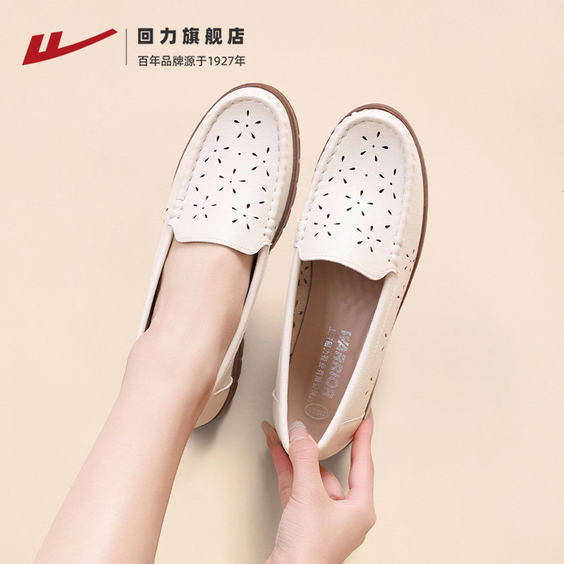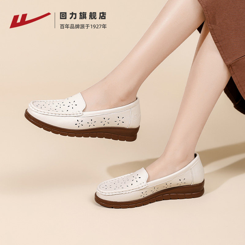 天猫回力老人鞋一脚蹬女鞋子中老年健步鞋乐福鞋软底透气妈妈皮鞋单鞋