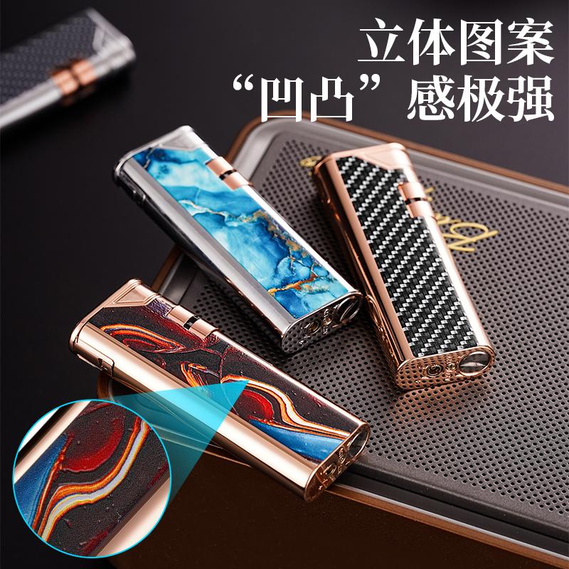淘宝侧滑感应装电池充气明火打火机金属浮雕立体图案个性潮创意送男友