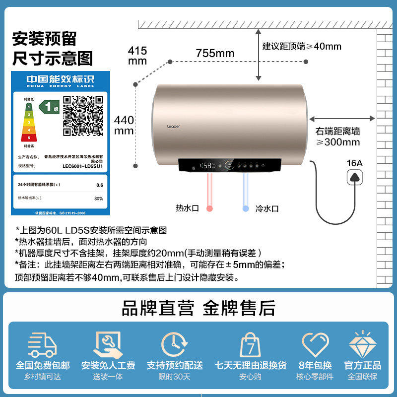 海尔出品统帅海尔电热水器洗澡家用海尔热水器一级能效正品官方店
