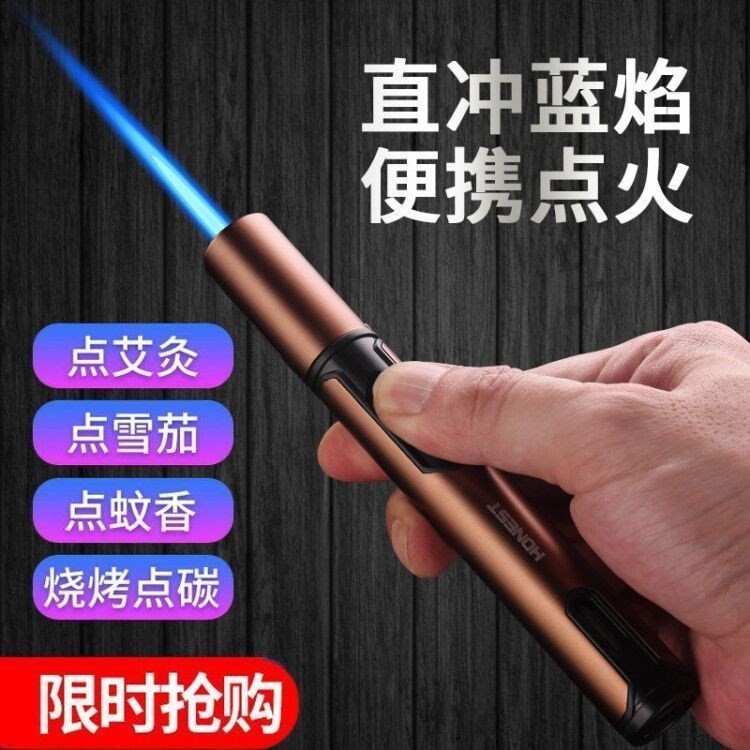 淘宝百诚户外电子充气打火机防风直冲笔式焊枪喷枪艾灸雪茄高温蓝焰潮