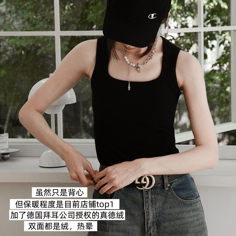 新款女士保暖背心秋冬季加绒加厚无痕内衣磨毛发热德绒羊毛打底衫