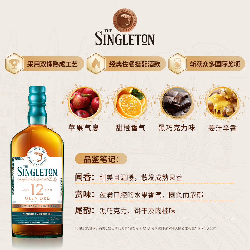 御玖轩 苏格登12年700ml单一麦芽苏格兰威士忌Singleton洋酒礼盒