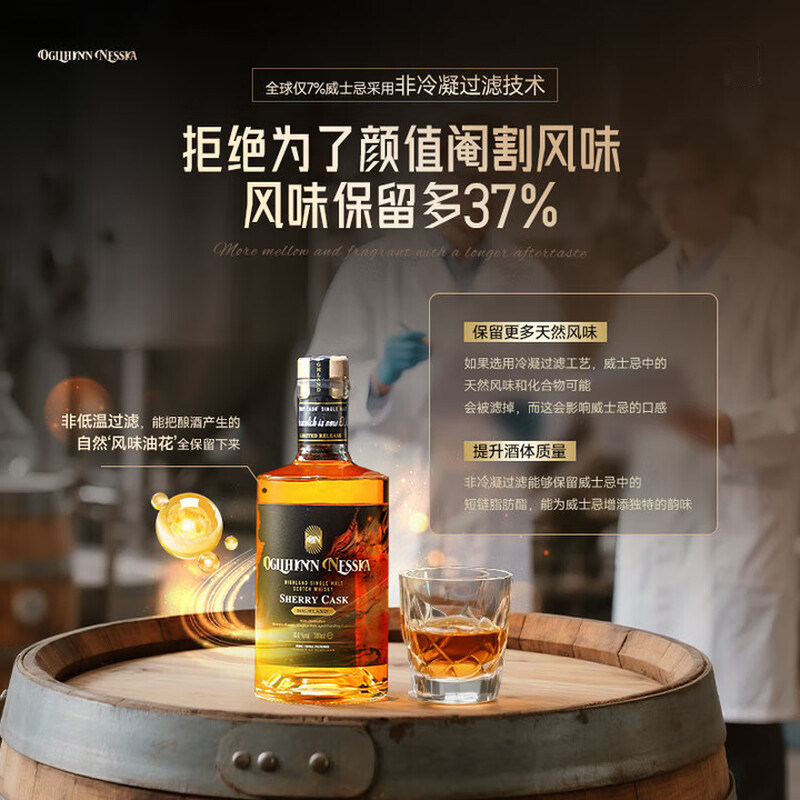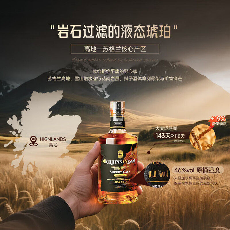 【自营】苏格兰原瓶进口单一麦芽雪莉桶威士忌,精选苏格兰高地优质大麦,经传统铜壶蒸馏,于顶级欧洲雪莉橡木桶中悉心陈酿,赋予酒液深邃的琥珀色泽与浓郁复杂的口感。开瓶即享干果、巧克力、香料与淡淡烟熏交织的馥郁芬芳,入口醇厚顺滑,尾韵悠长回甘。酒精度高达40%以上,尽显烈酒本色。原装礼盒包装,典雅大气,无论是自享品鉴,还是馈赠亲友、商务礼赠,皆彰显品味与格调。每一滴皆源自苏格兰百年酿酒工艺,品质保证,值得信赖。