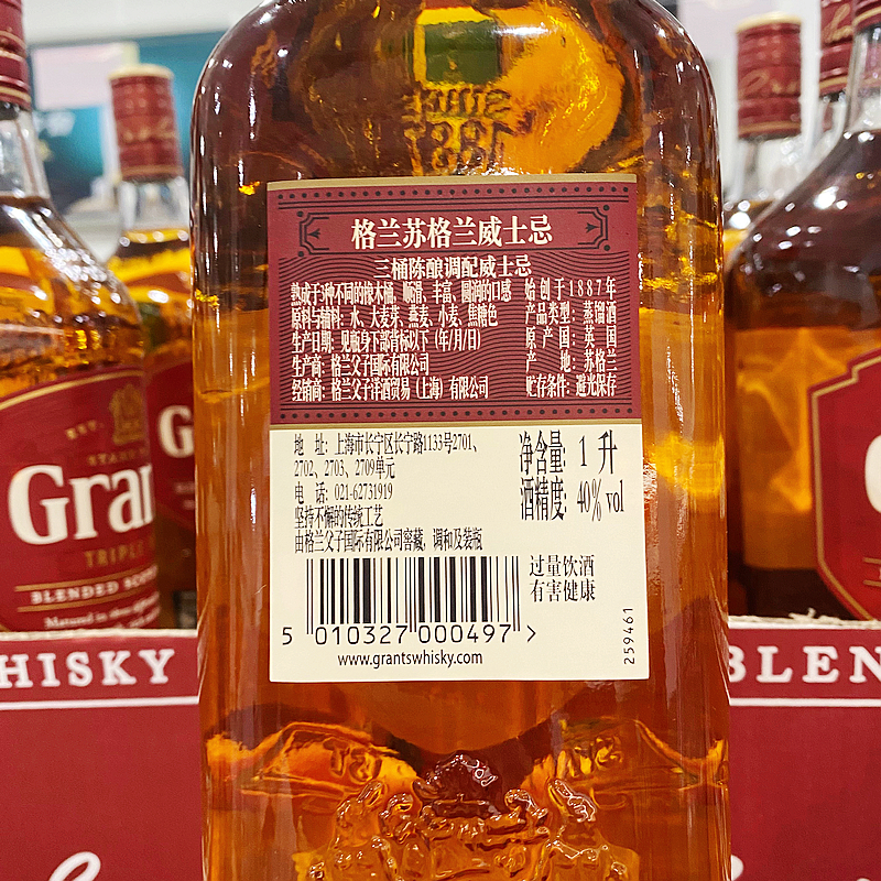 淘宝开市客Costco代购英国进口grant's格兰苏格兰威士忌1L洋酒wiskey