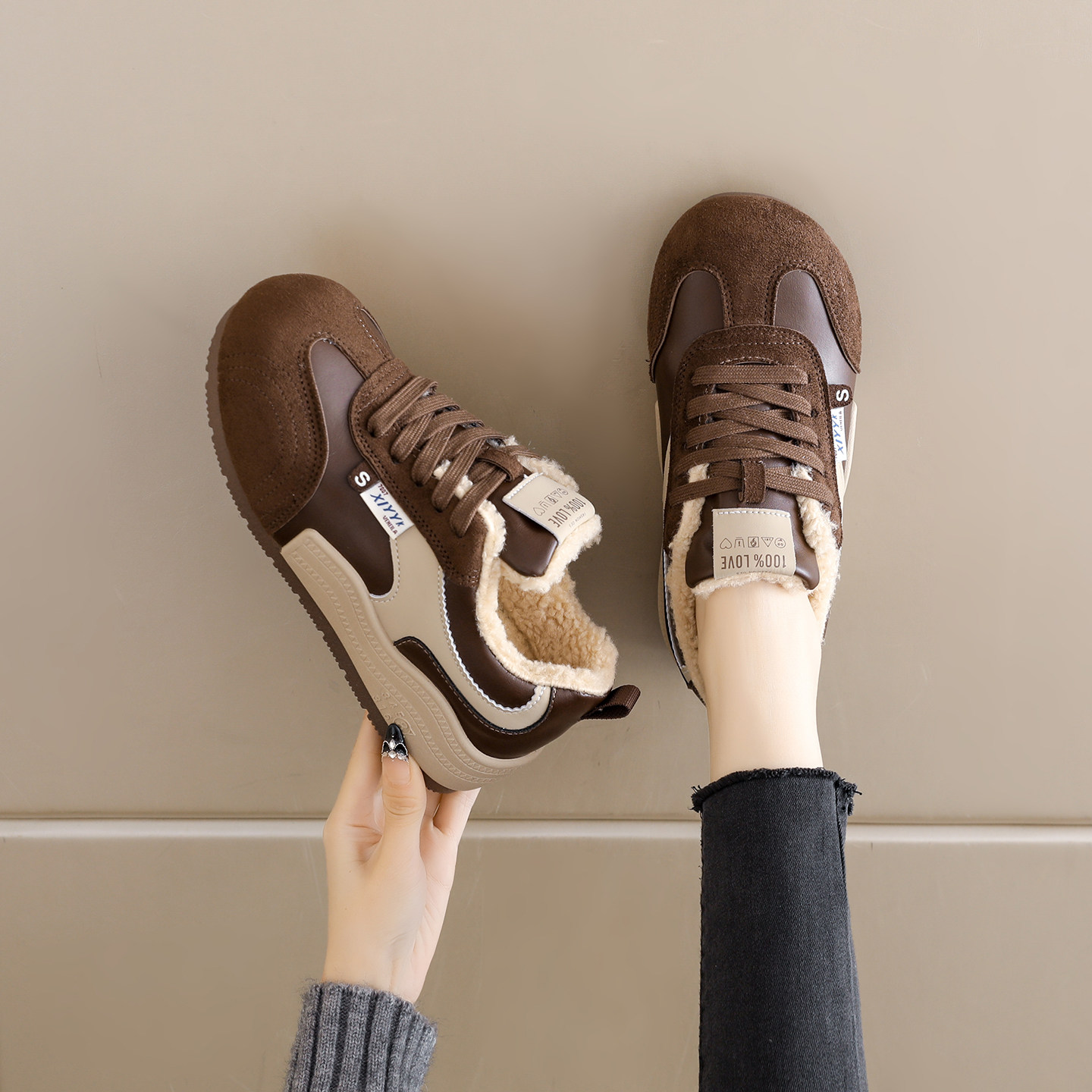 天猫莆田加绒德训鞋女厚底34码2025冬季女鞋加厚保暖休闲板鞋毛毛棉鞋