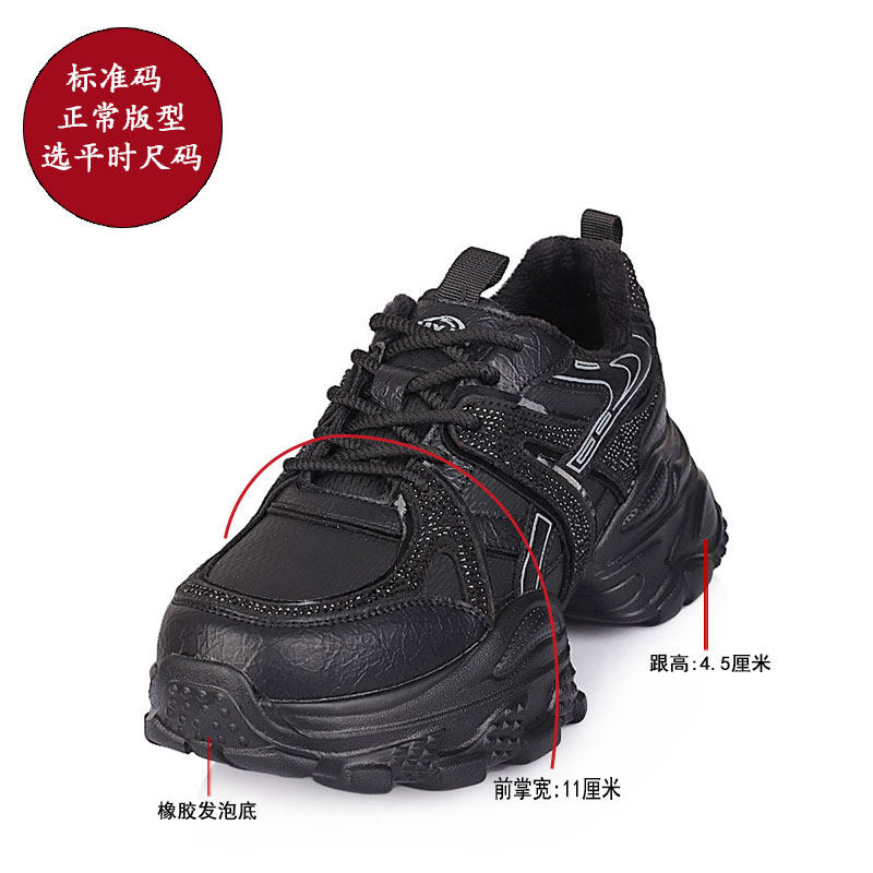 天骆驼女鞋2025秋冬厚底银色老爹鞋女加绒时尚休闲运动鞋