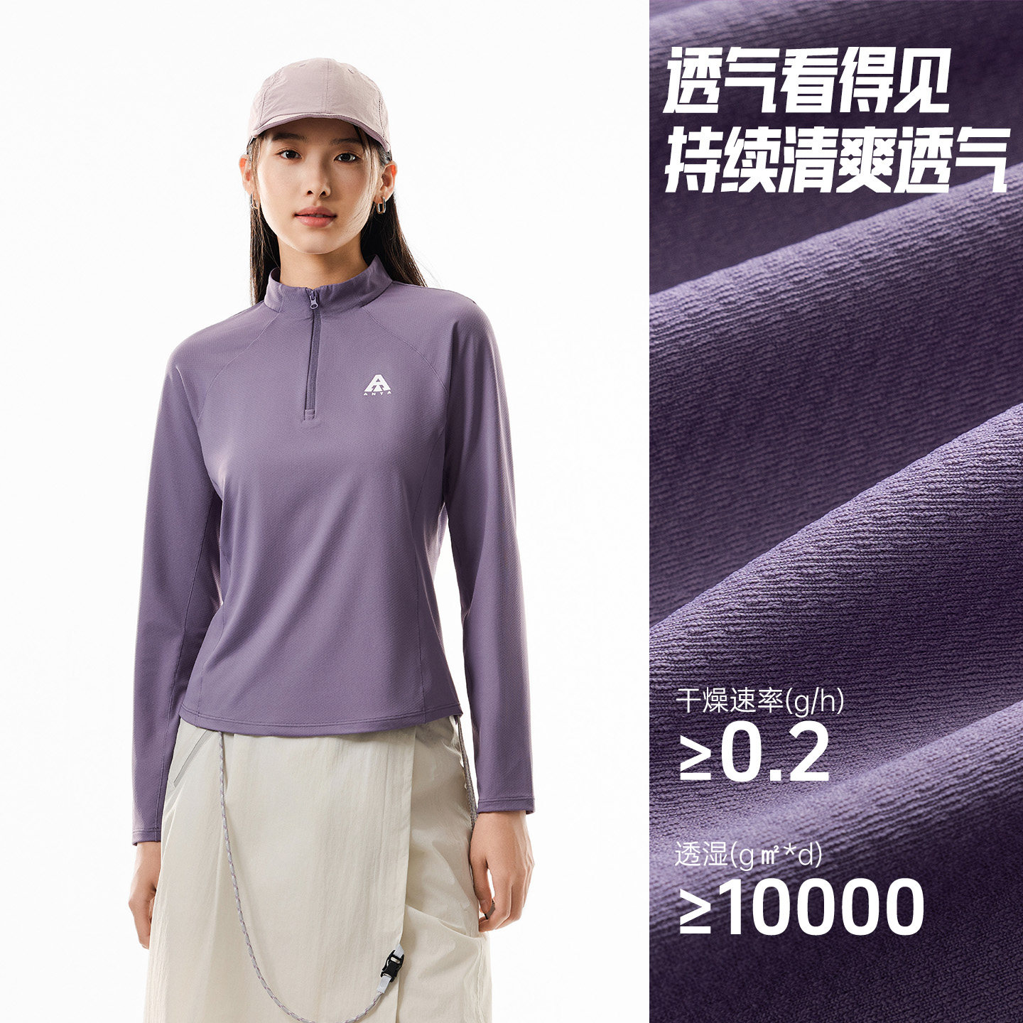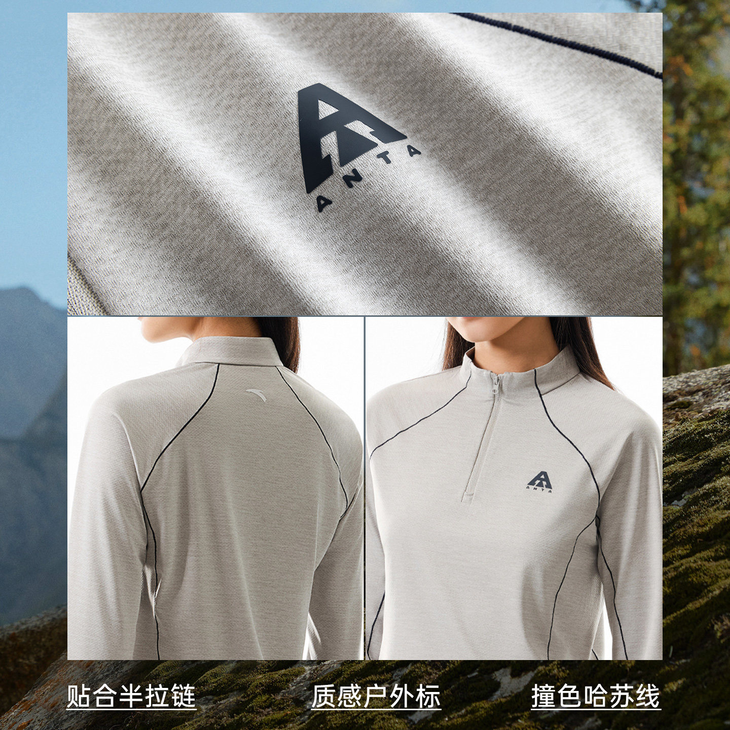 天猫安踏速干T丨大地之壳3.0户外半拉链长袖t恤女春季卫衣打底衫上衣