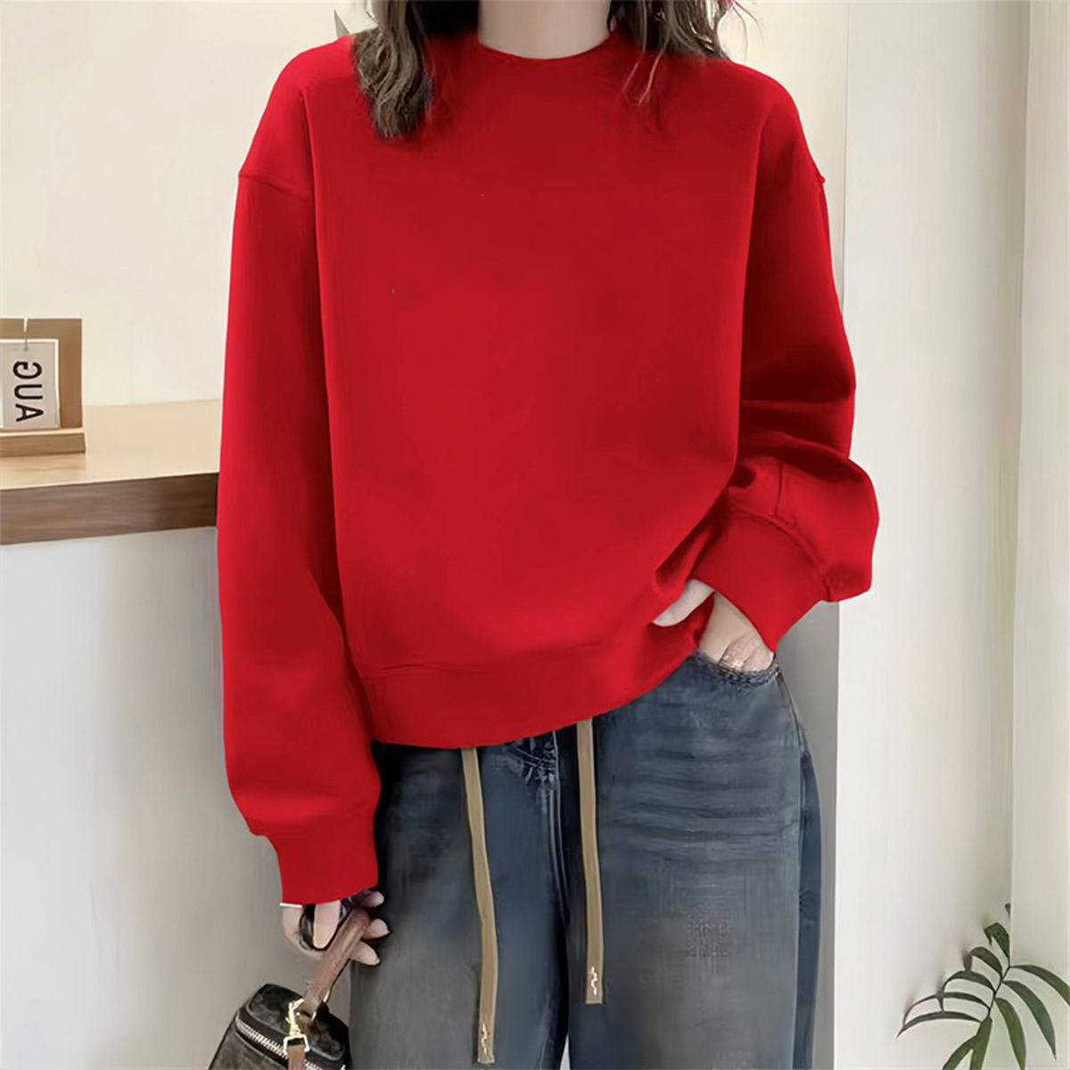 淘宝高端大牌即墨100%纯棉卫衣女春秋慵懒风宽松显瘦薄款休闲纯色上衣