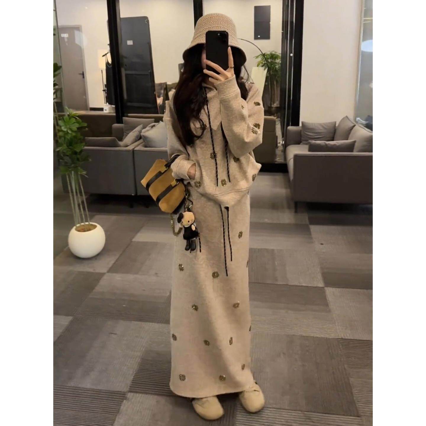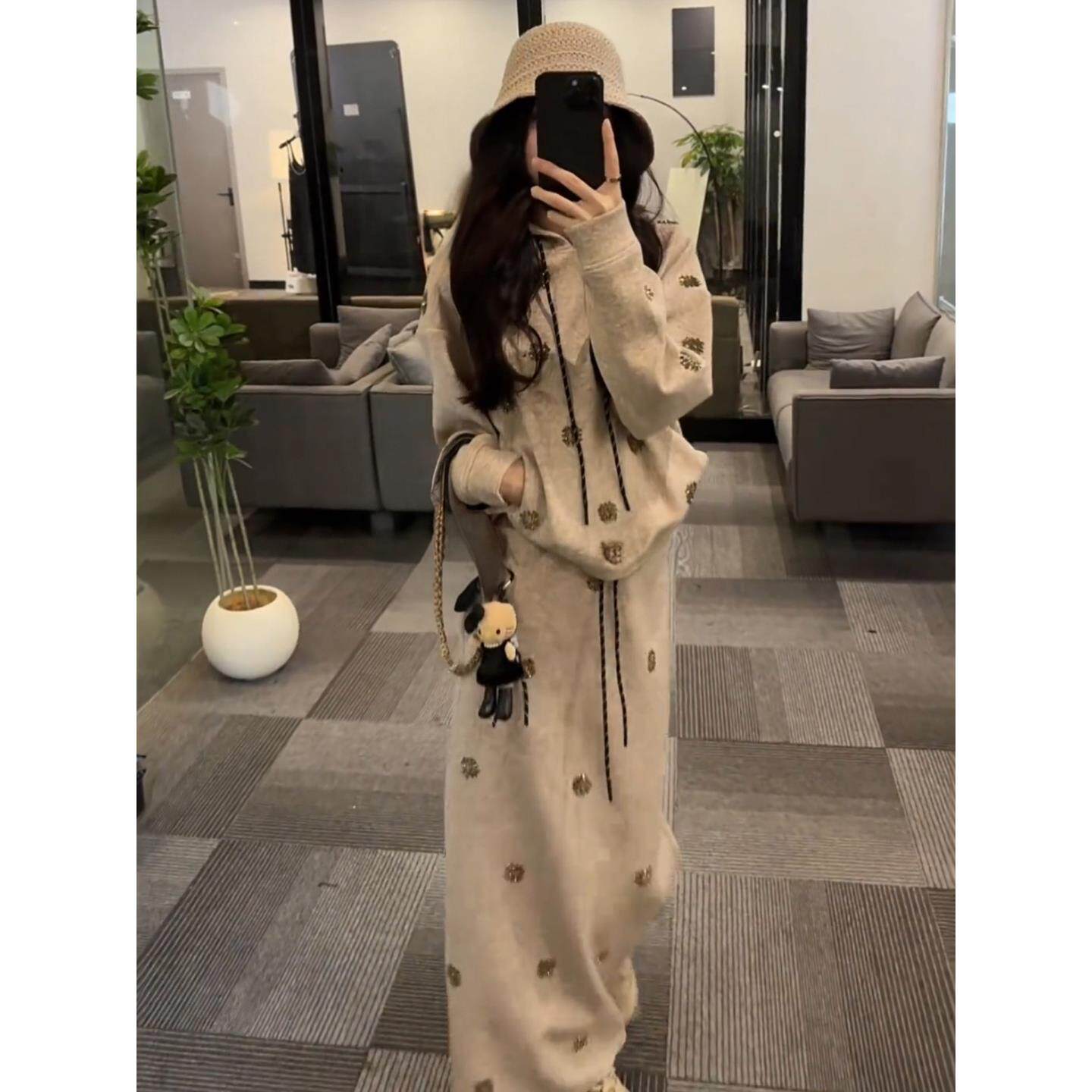 淘宝巨好看一整套穿搭女2025秋冬高级感重工串珠连帽卫衣半身裙两件套