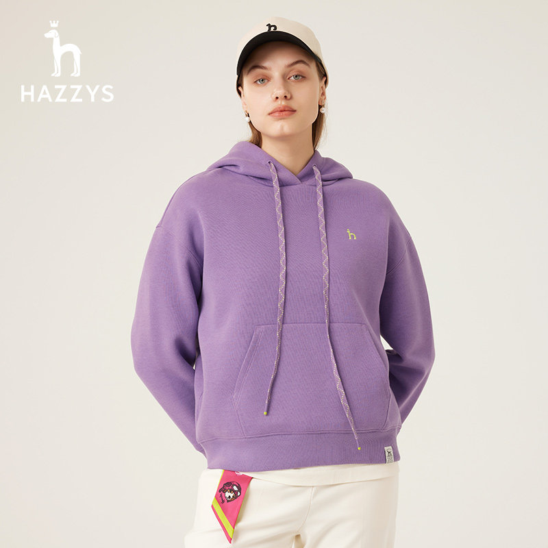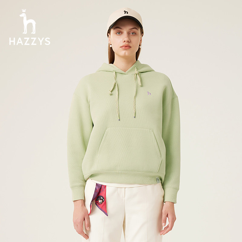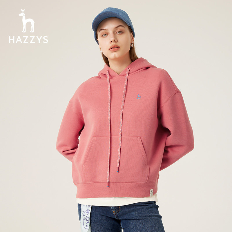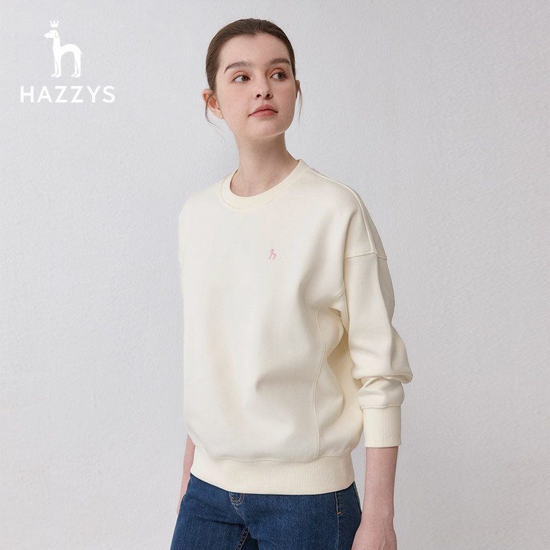 天猫Hazzys哈吉斯奥莱春新款宽松落肩版多巴胺色时尚圆领长袖卫衣女潮