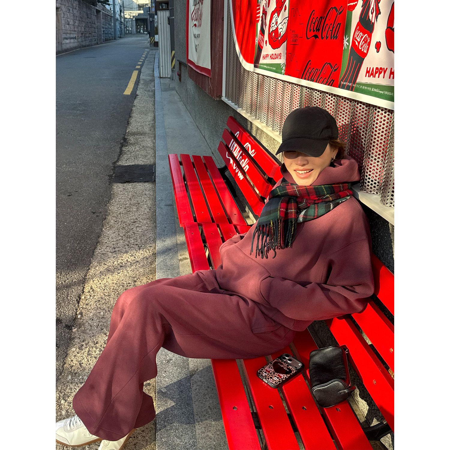 '镇店'私服同色系三件套!加绒连帽卫衣双腰卫裤修身打底衫套装女