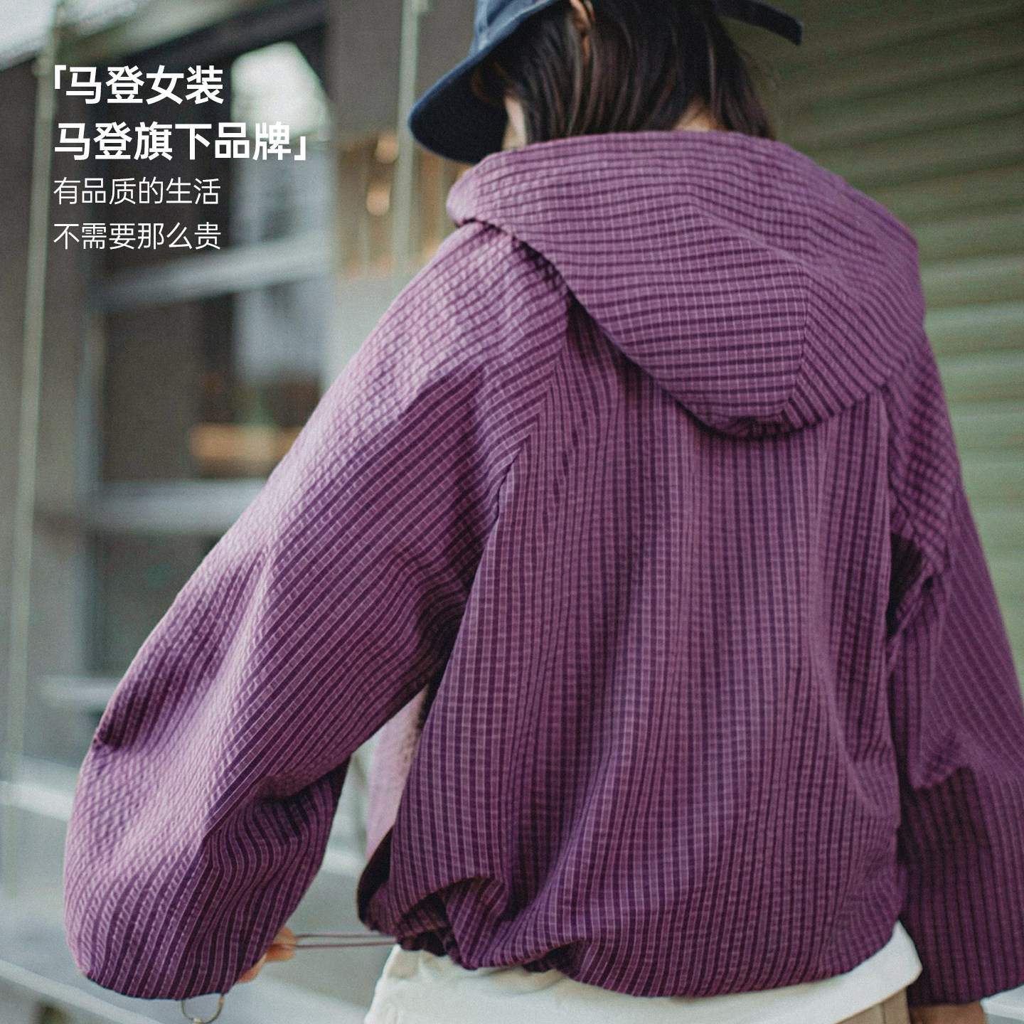 淘宝马登美式泡泡纱连带帽半开襟工装卫衣套头衫宽松机能风上衣女士春
