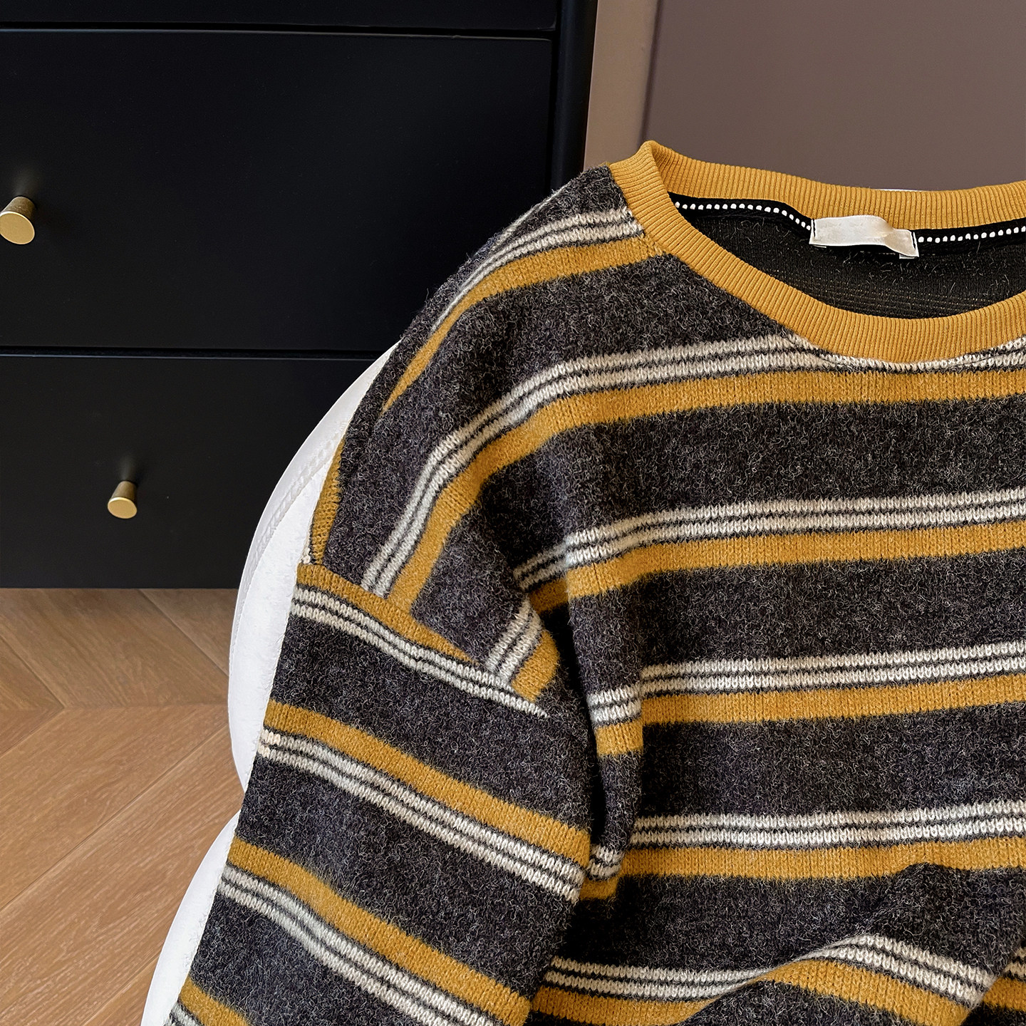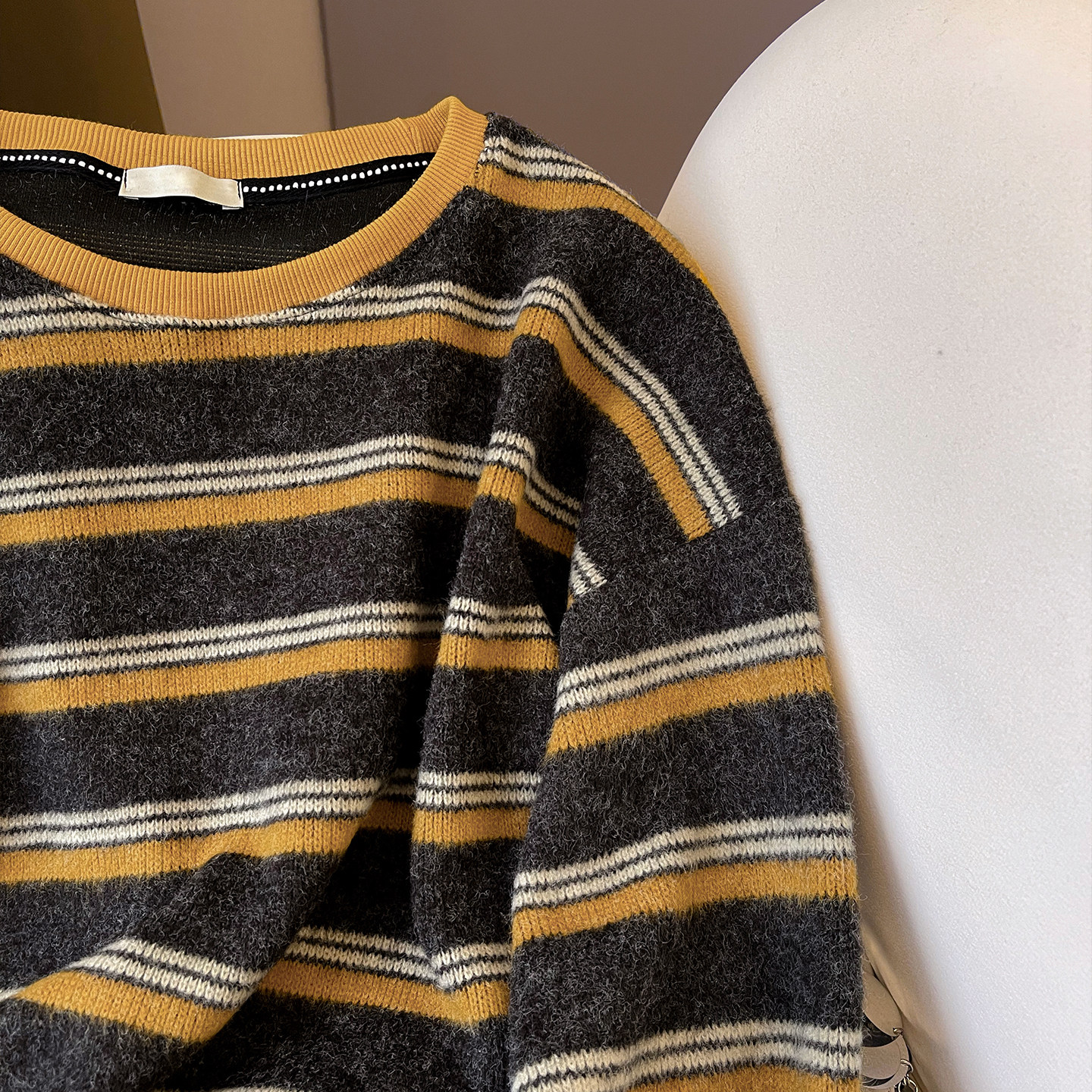 淘宝小C家 复古撞色条纹卫衣女2025新款秋季加厚宽松圆领软糯毛毛上衣