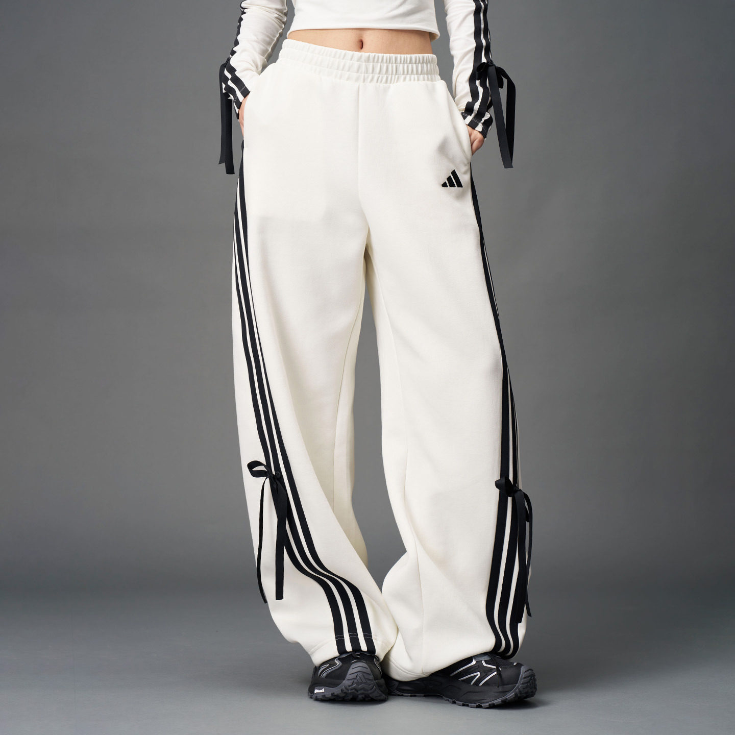 休闲舒适三条纹宽松梭织弯刀裤女装adidas阿迪达斯三叶草KS3324