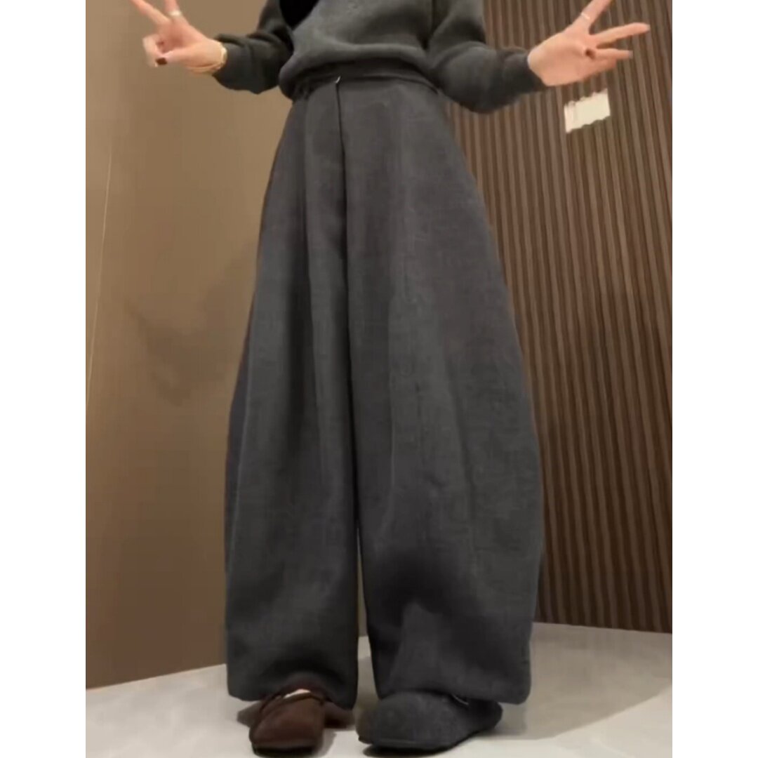 淘咖咪羽棉裤女秋冬新款女士宽松百搭复古洋气时尚阔腿通勤女装裤子
