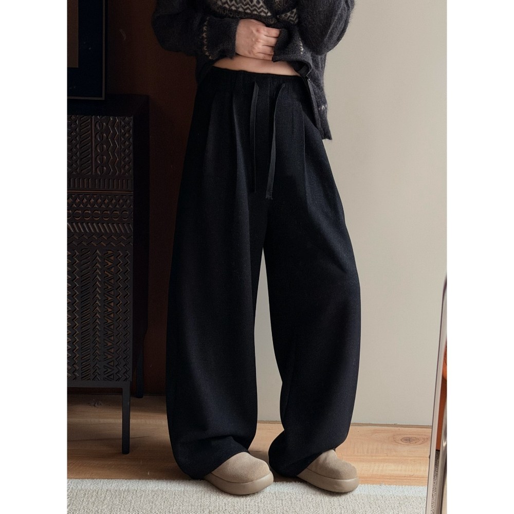 淘*WKZ08167 茉莉雅集慵懒松弛垂感含羊毛半牛筋腰直筒休闲裤秋冬女