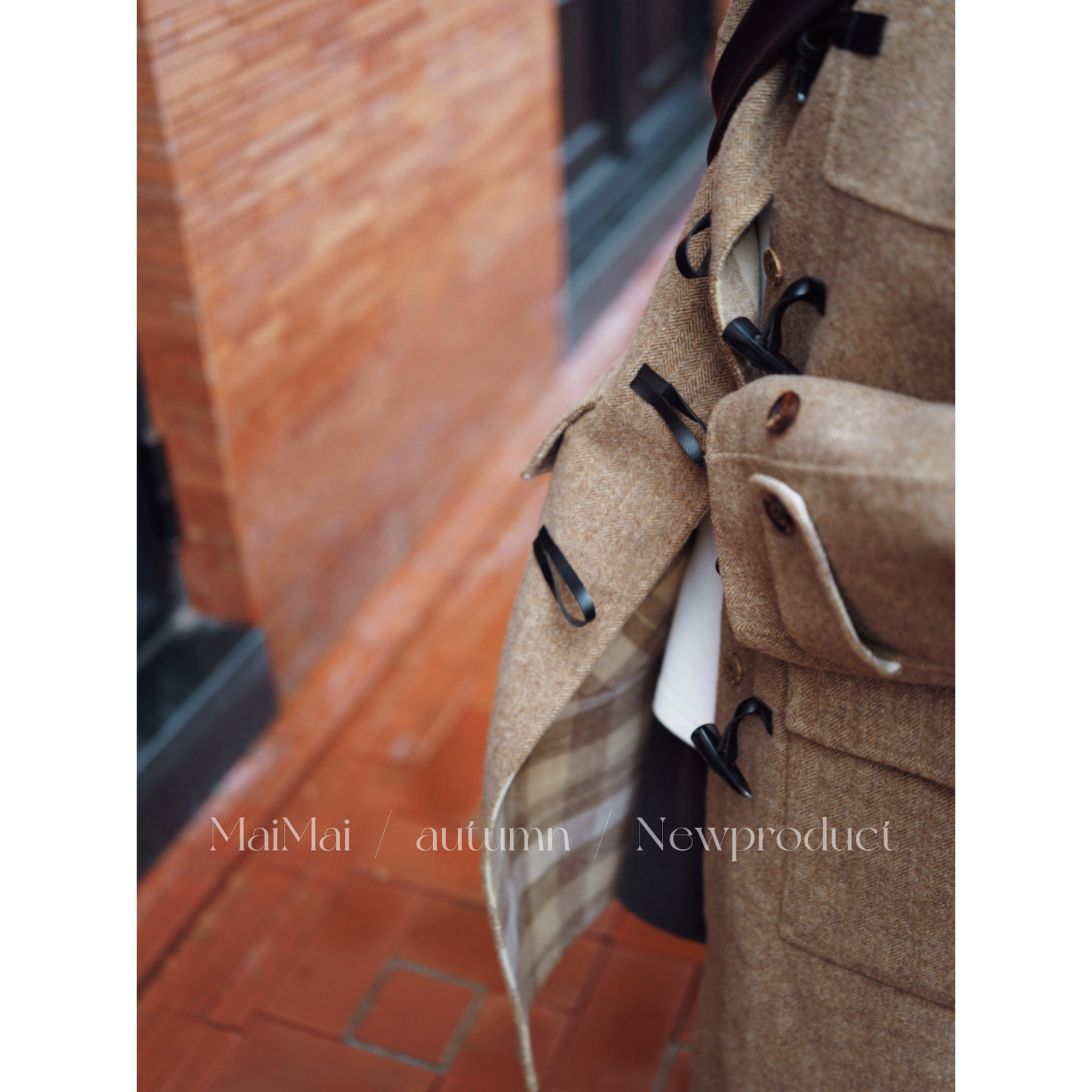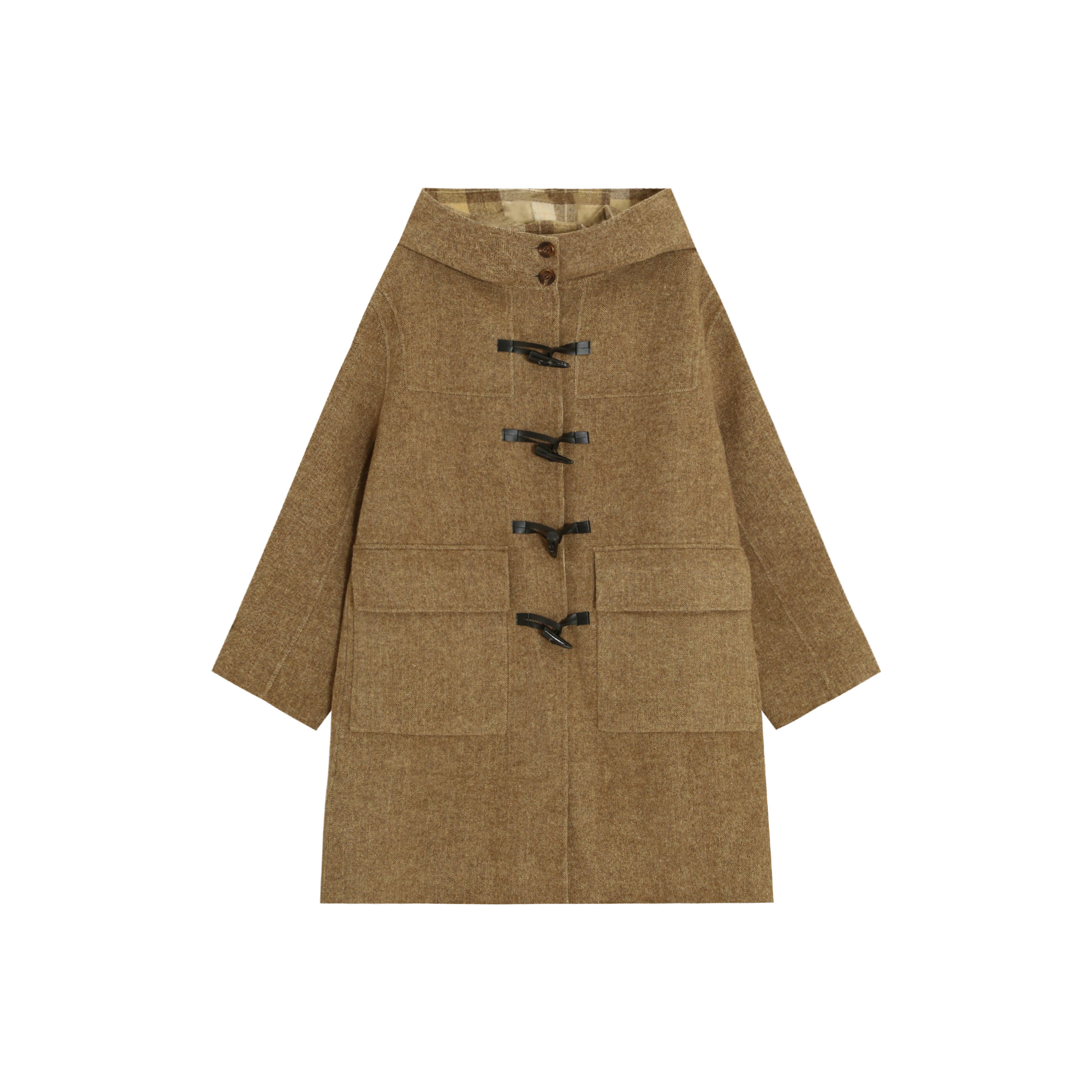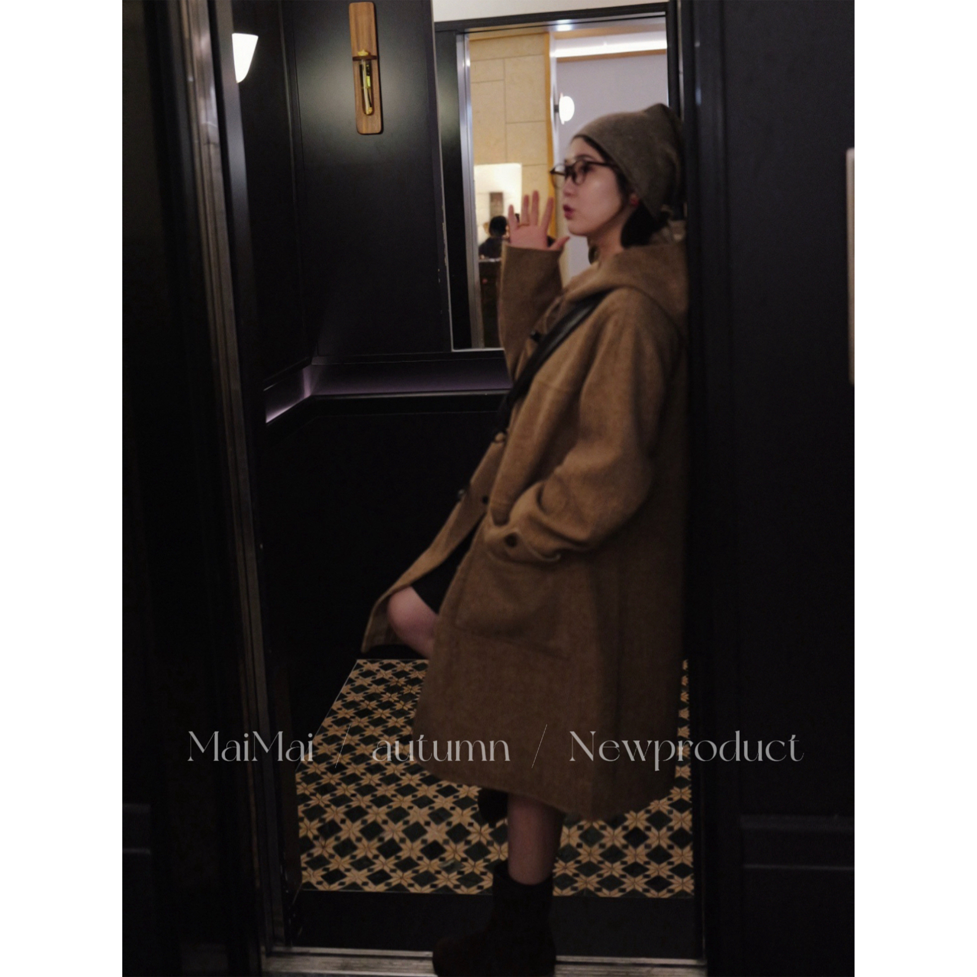 淘宝【郑买买】焦糖拿铁 2025年秋冬款学院风连帽牛角扣毛呢大衣