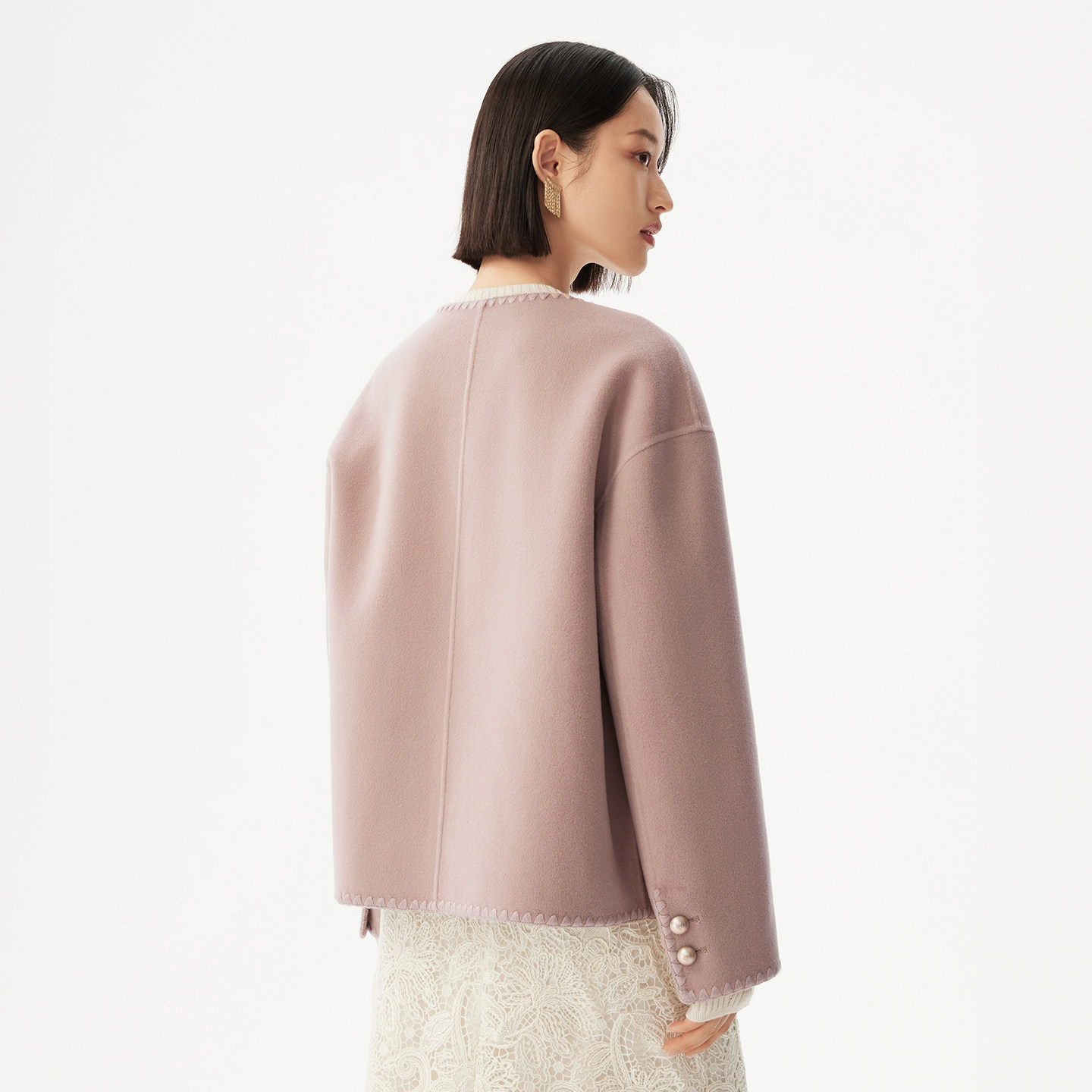 天猫【小香风毛呢】VGRASS维格娜丝25秋冬新款绵羊毛贝壳绣短大衣外套