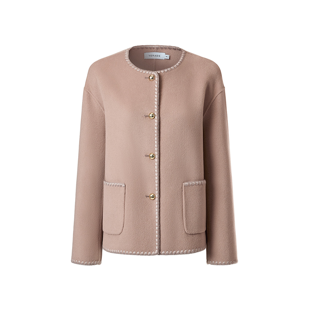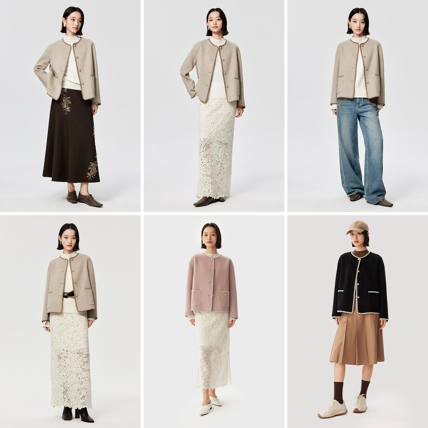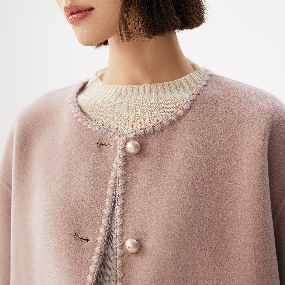 VGRASS维格娜丝25秋冬新款小香风毛呢短大衣,精选优质绵羊毛面料,质感挺括、细腻保暖,彰显高级格调。经典贝壳绣工艺点缀衣身,精致立体,融合优雅与摩登气息。短款剪裁利落修身,轻松拉长腿部线条,适配多种穿搭场景。无论是通勤通勤还是休闲聚会,都能展现知性干练又不失温柔的女性魅力。细节处考究做工,金属纽扣与滚边设计相得益彰,尽显品牌匠心。这款外套不仅是秋冬衣橱的实用单品,更是品味与风格的象征,为现代女性打造 timeless 的时尚风范。