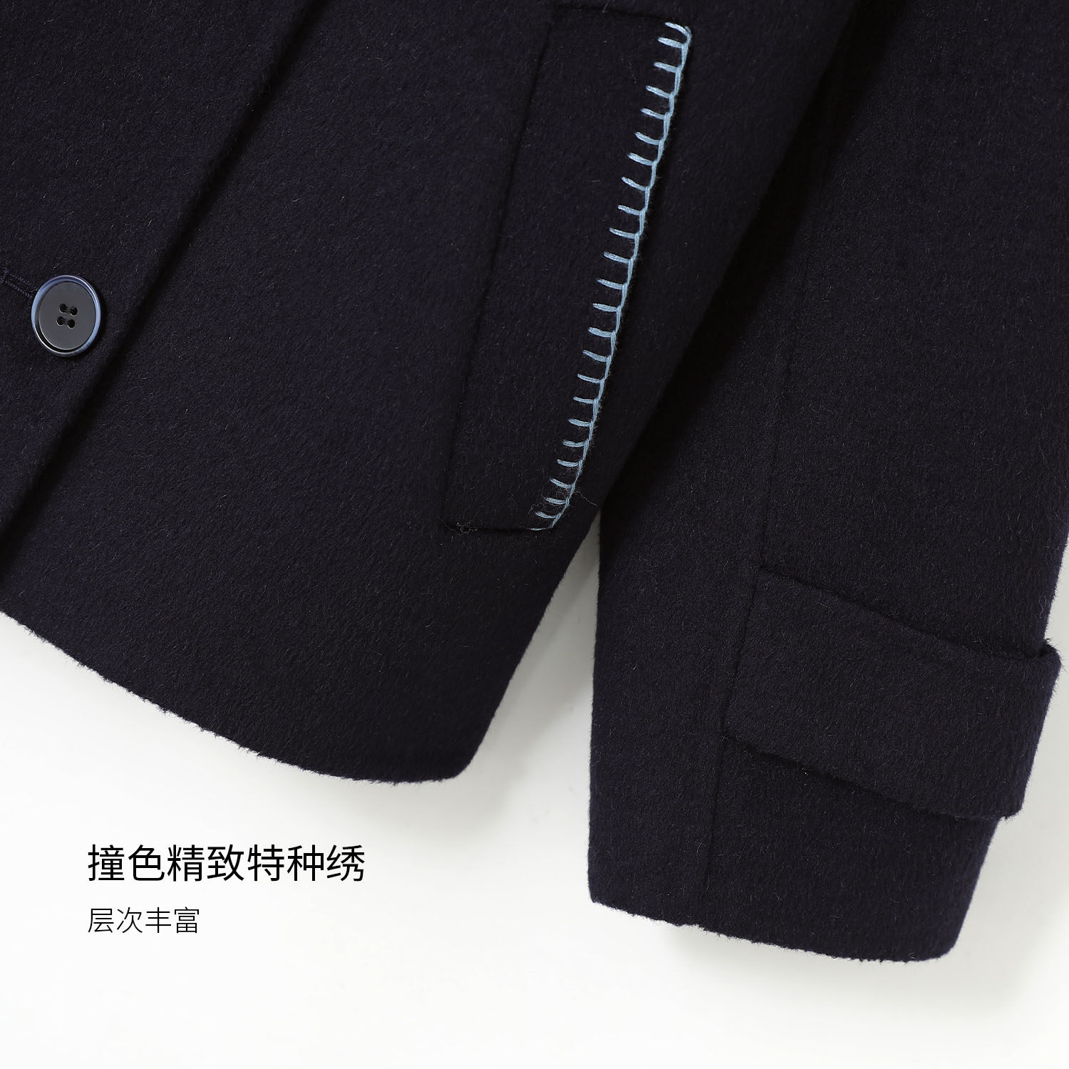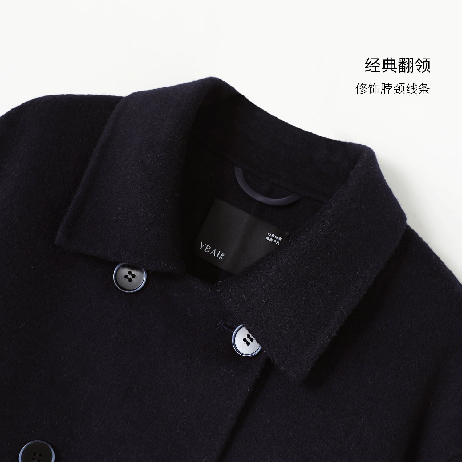 淘宝YBAI/亦白 2025冬季新款时尚简约百搭撞色特种绣双面呢毛呢大衣女