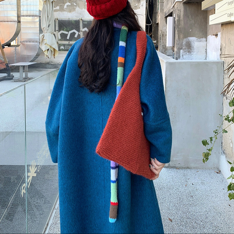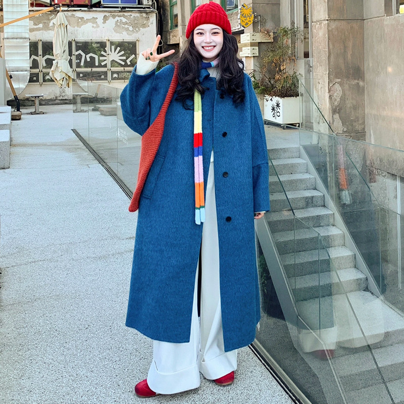 淘宝蓝色双面羊绒大衣女冬季新款高级感韩系大牌中长款牦牛绒毛呢外套