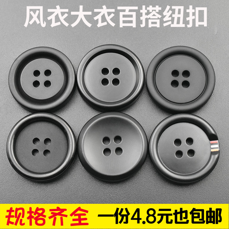 淘纽扣扣子高档大衣扣毛呢大衣外套纽扣风衣扣女装西服凹面黑色纽扣
