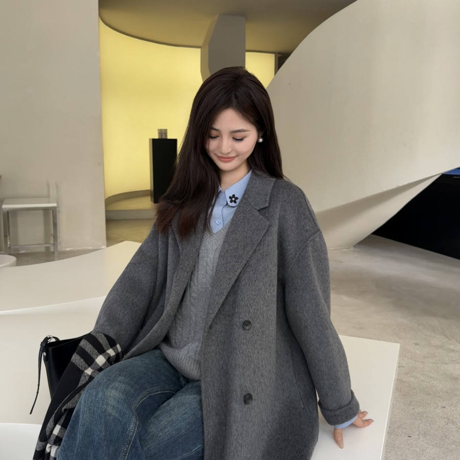 【单大衣没马甲】韩版爆款气质小个子羊毛大衣,专为娇小女生量身打造,中长款设计巧妙拉长身形比例,显高又显瘦。精选优质羊毛呢面料,触感柔软,保暖性佳,穿着挺括有型。简约大方的剪裁融合韩式优雅风格,立领设计凸显颈部线条,搭配精致纽扣,细节彰显品质。无马甲设计更添利落感,轻松驾驭通勤、约会等多种场合。多色可选,百搭实穿,是小个子女生秋冬提升气质的必备单品,轻松穿出韩剧女主角般的温柔与知性。