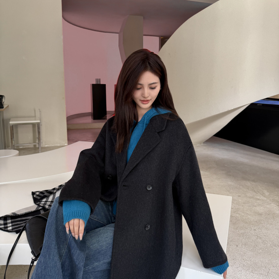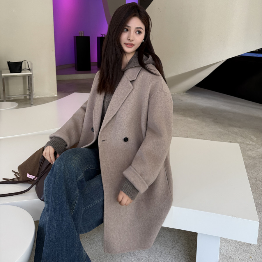高档反季双面羊绒大衣女西装领韩版茧型宽松小个子羊毛呢子外套