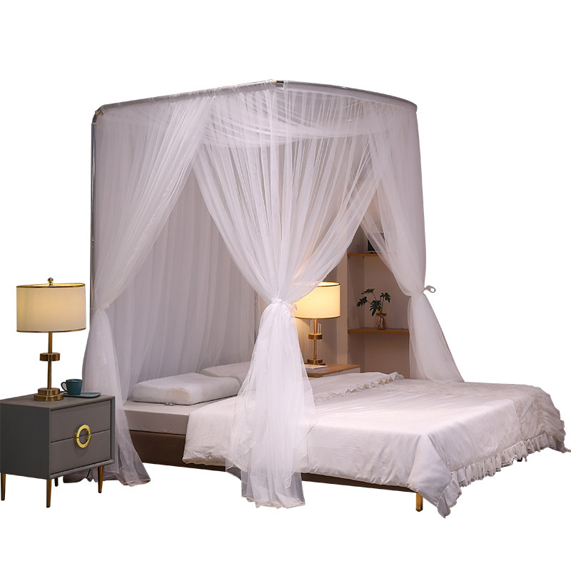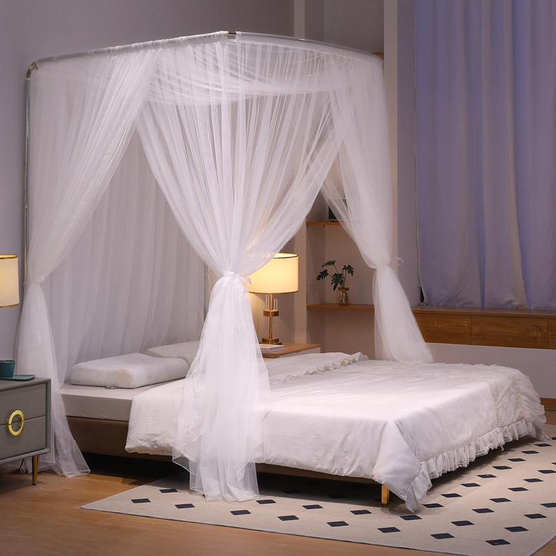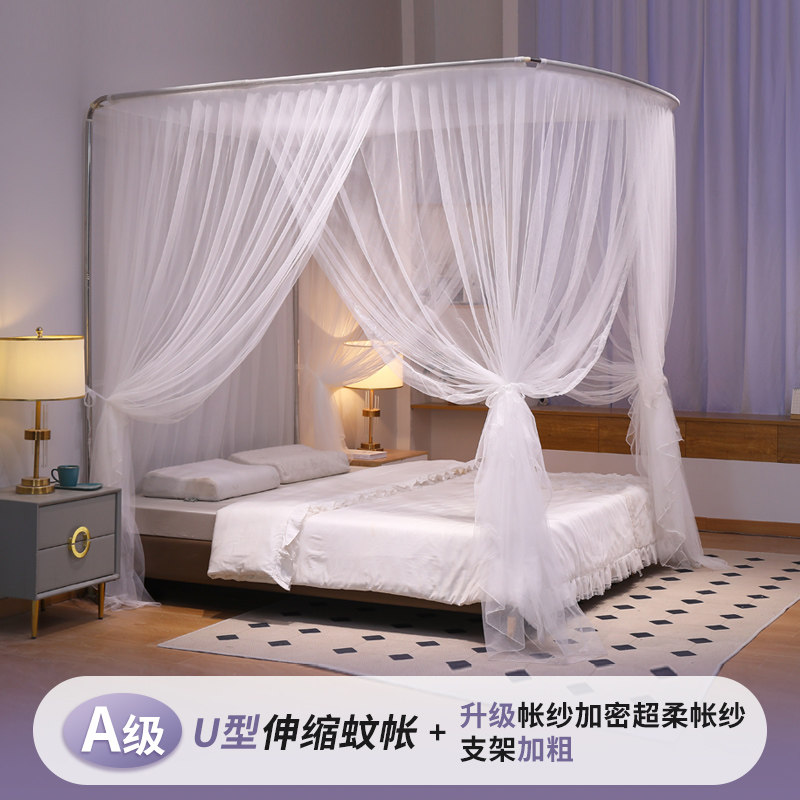 穿杆A类蚊帐U型伸缩不锈钢支架落地家用高级卧室床幔,采用优质A级加密网眼面料,防蚊透气,安全环保,母婴适用。U型设计搭配高强度不锈钢伸缩支架,稳固耐用,安装简便,可自由调节高度与跨度,适配多种床型。落地式结构形成独立私密空间,兼具遮光、防尘与装饰功能,营造浪漫公主风卧室氛围。顶部精美蕾丝花边与垂坠感十足的床幔相得益彰,提升家居格调。适用于主卧、儿童房或民宿等场景,是兼顾实用性与美感的理想床帐选择,让您安享宁静舒适睡眠时光。