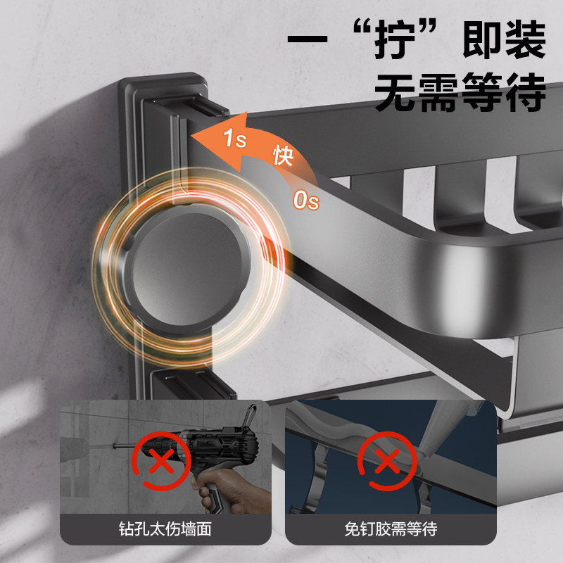 枪灰卫生间置物架浴室三角架子免打孔壁挂厕所洗手间洗漱台收纳架