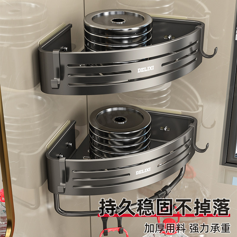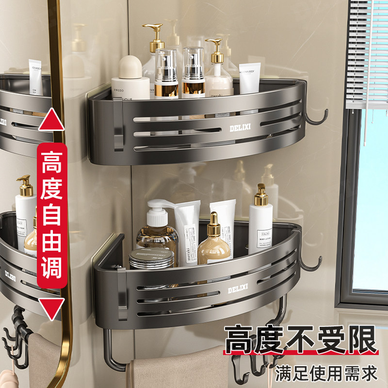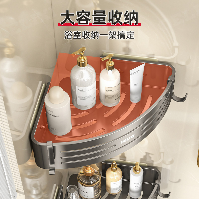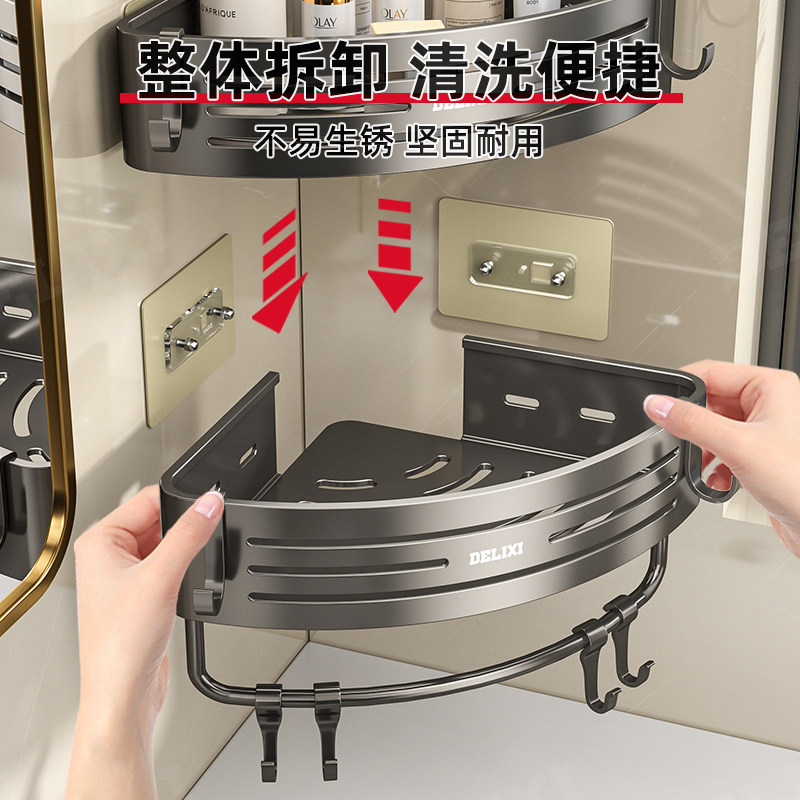 天猫德力西卫生间置物架浴室免打孔厕所洗漱台三角壁挂洗澡墙角收纳架