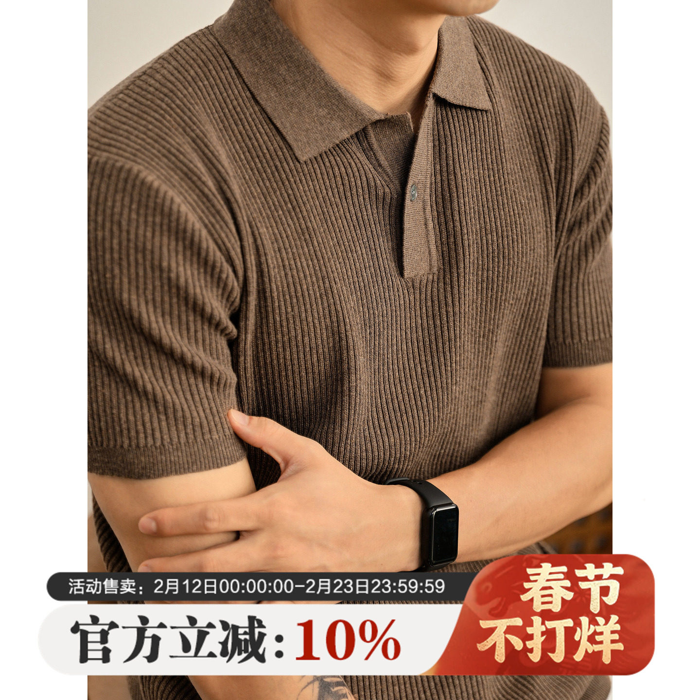 淘宝LUUD 老钱轻熟风夏季凉感坑条肌理感针织POLO衫男士半拉链翻领T恤