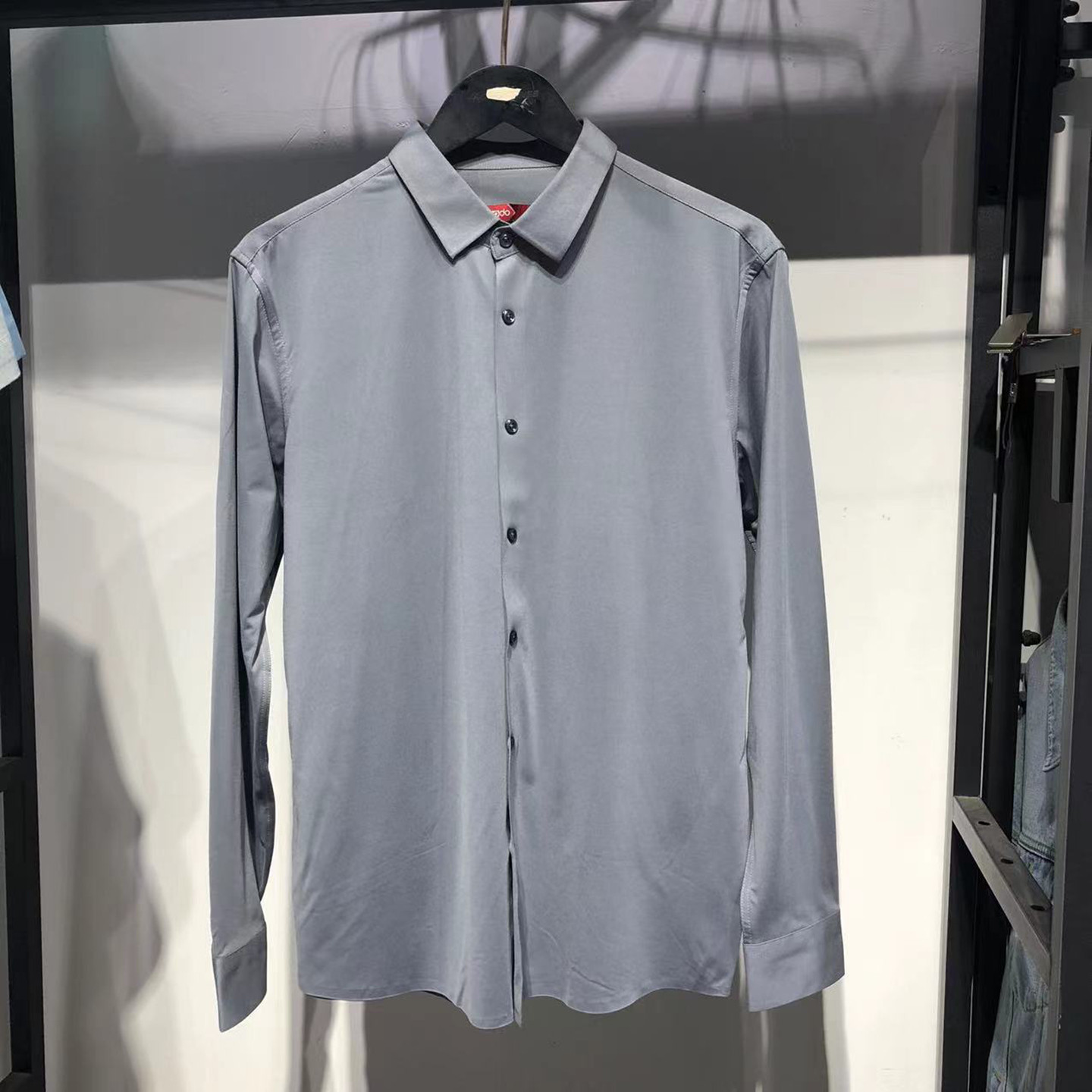 淘宝品牌男装秋冬款男士弹力柔软黑色简约商务长袖衬衫修身衬衣打底衫
