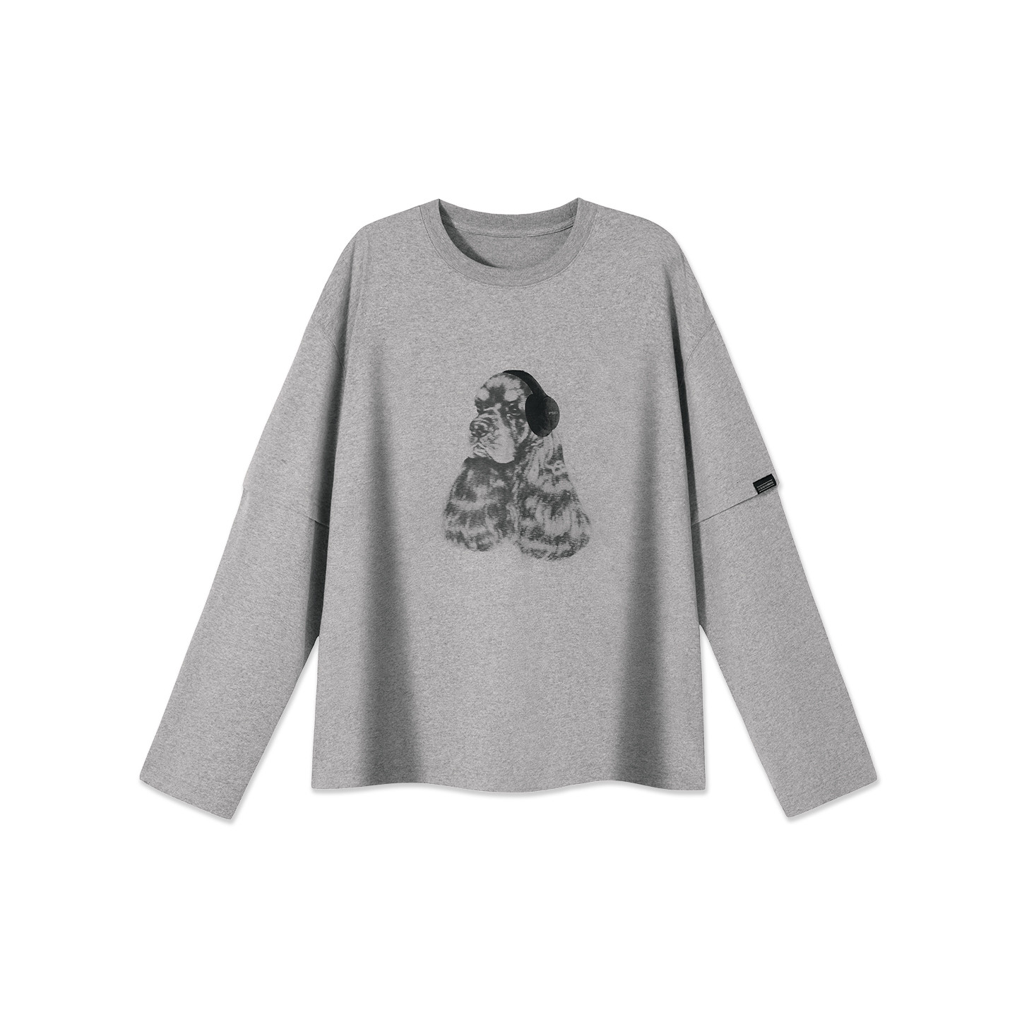 淘宝PSO Brand男装女装【假两件】模糊耳机小狗长袖T恤宽松情侣上衣秋