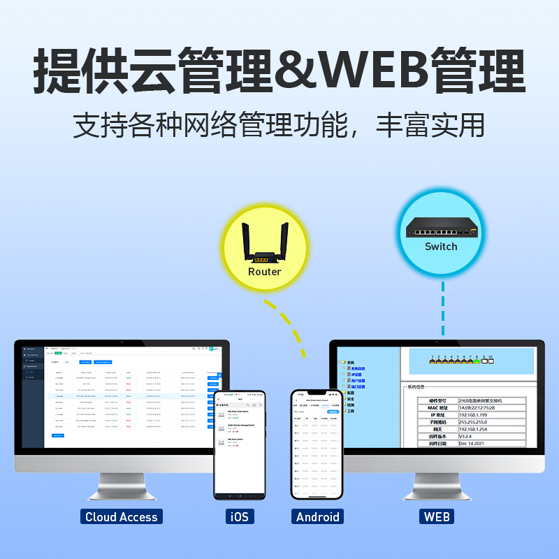 希力威视云管理型POE交换机专为安防监控设计,支持4口、8口、16口、24口多种规格,兼容百兆与千兆传输,满足中小型监控网络需求。设备支持标准802.3af/at POE供电,单端口最大30W输出,可直接为网络摄像头、无线AP等设备供电,简化布线。具备VLAN隔离功能,有效划分监控专网,提升数据安全性与网络稳定性。支持远程云管理,可通过手机或电脑实时查看设备状态、配置端口及故障诊断。采用工业级设计,宽温工作,稳定可靠,适用于小区、商铺、工厂等场景,是构建高效、安全监控网络的理想选择。