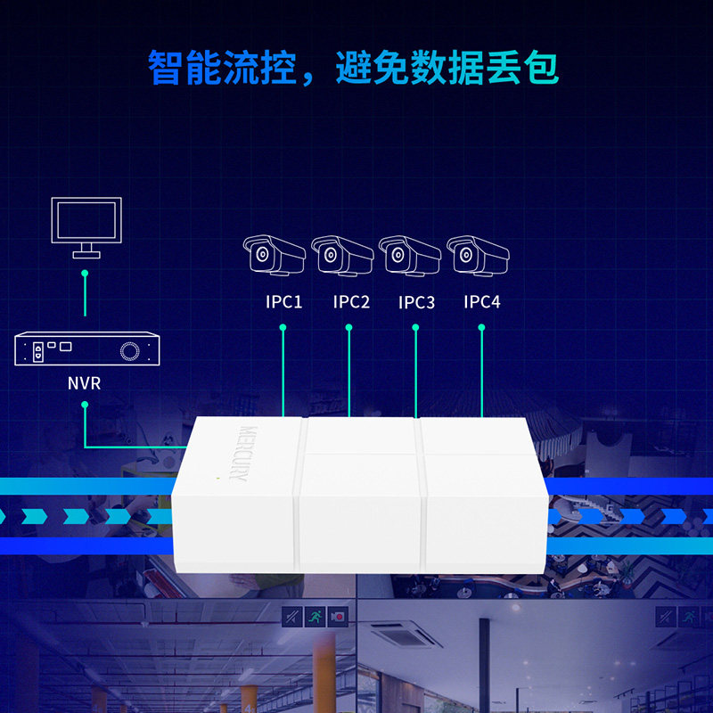 水星POE交换机供电监控专用百兆千兆8口4四5五16个24八10摄像头串联级联国标家用网络分线分流路由器标准48V