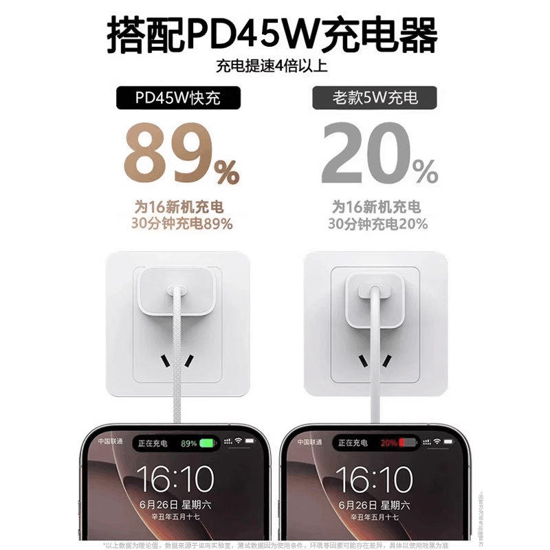 天【iPhone17首选】【45W快充】迈空适用苹果17promax充电器头原15正品装手机iPhone16数据线14plus编织平板PD