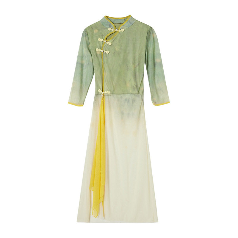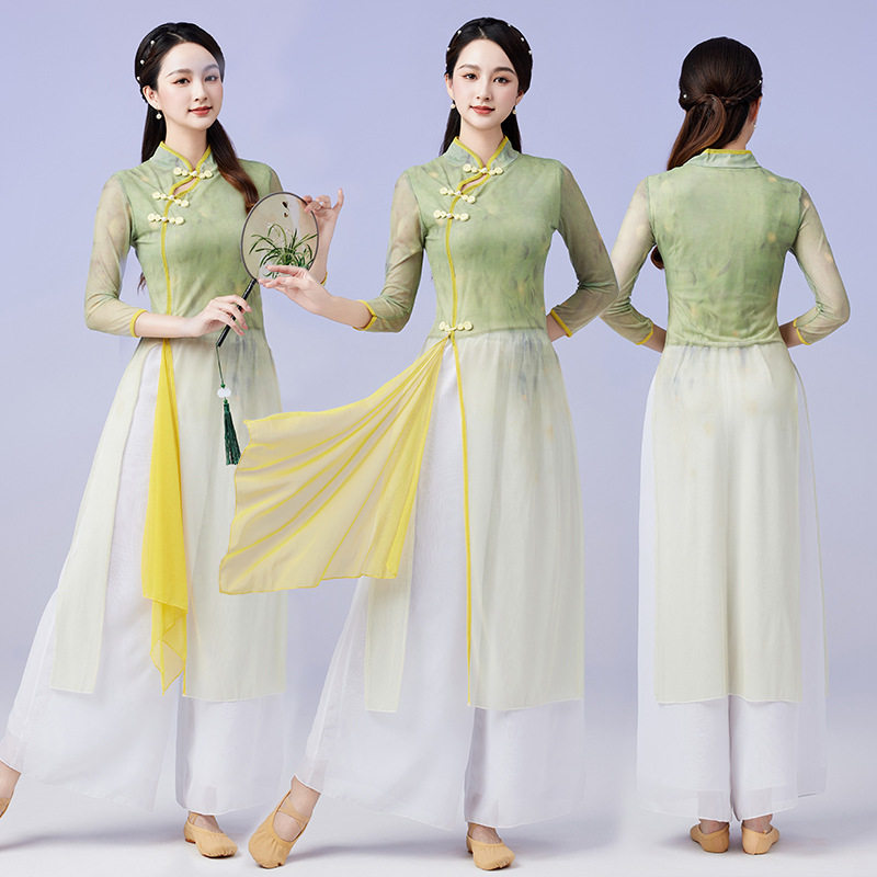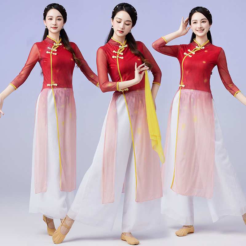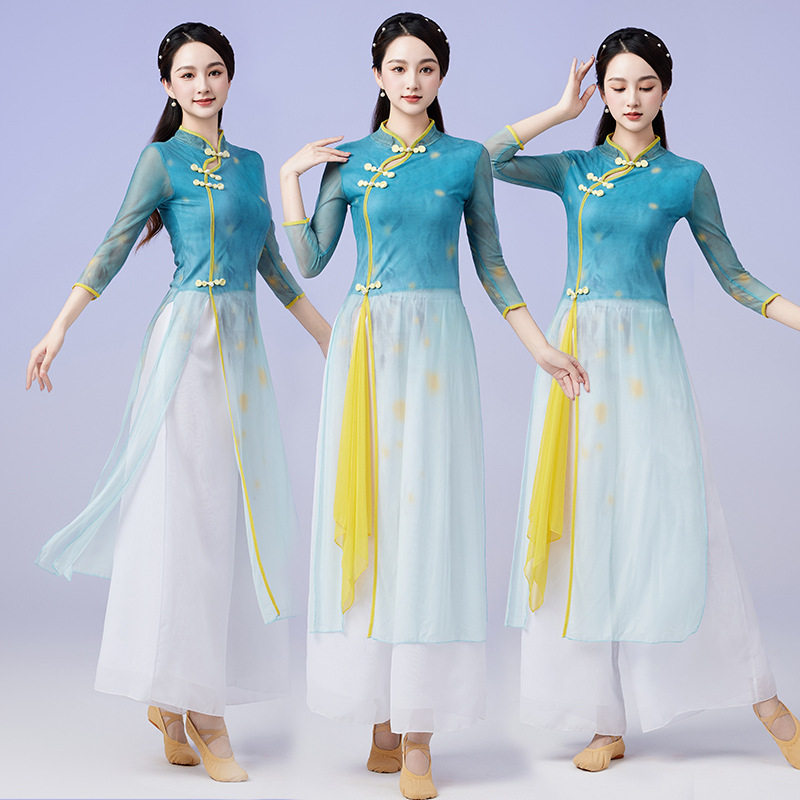 淘宝广场舞服装新款旗袍渐变色古典民族舞蹈服中国风仙气表演服演出服