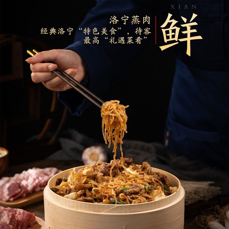 洛宁蒸肉是河南洛阳洛宁县的传统非遗美食,历史悠久,风味独特。选用优质五花肉与排骨,配以当地特制米粉及多种香料,经传统工艺蒸制而成,口感软糯鲜香,肥而不腻,入口即化。成品色泽金黄,香气扑鼻,既保留了肉质的鲜美,又融合了米粉的绵密口感。如今,洛宁蒸肉创新推出即食装,加热即享,方便快捷,成为深受喜爱的速食佳品。作为地方饮食文化的重要代表,洛宁蒸肉不仅承载着乡土记忆,也走向全国,让更多人品尝到这道地道中原美味。