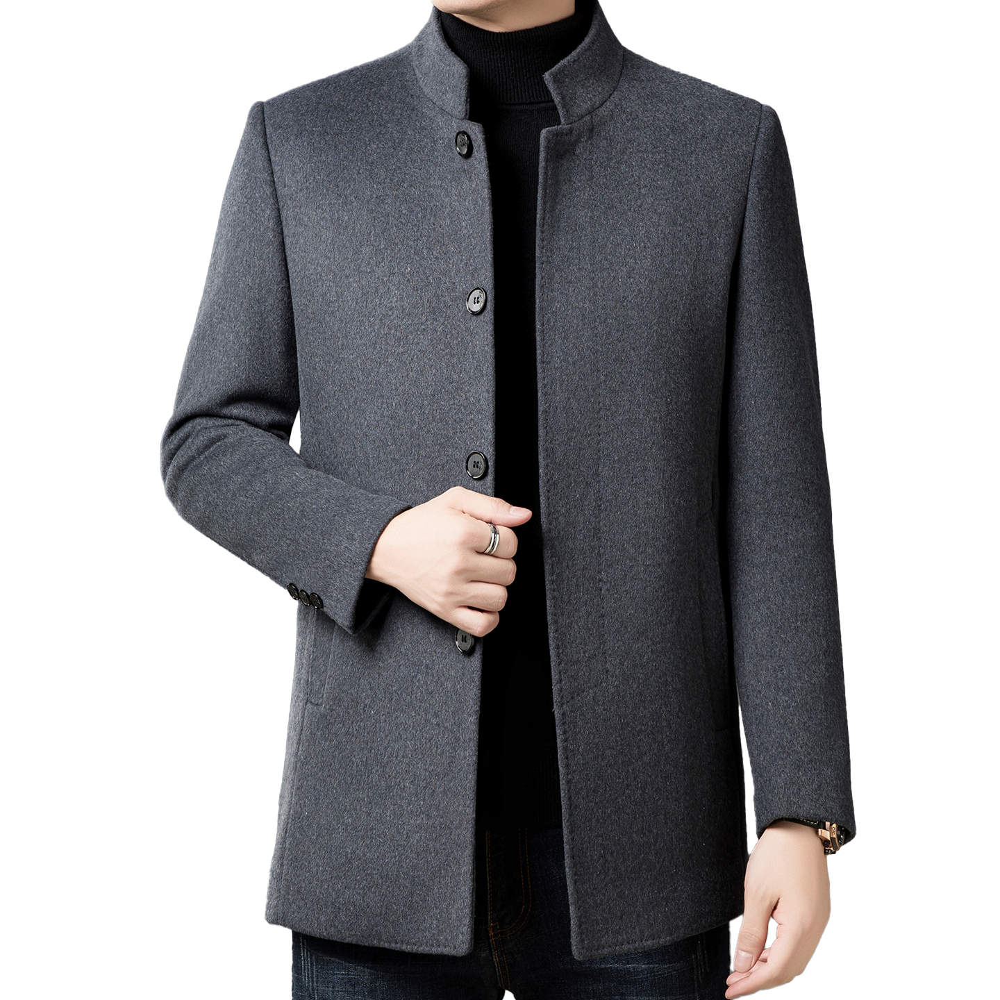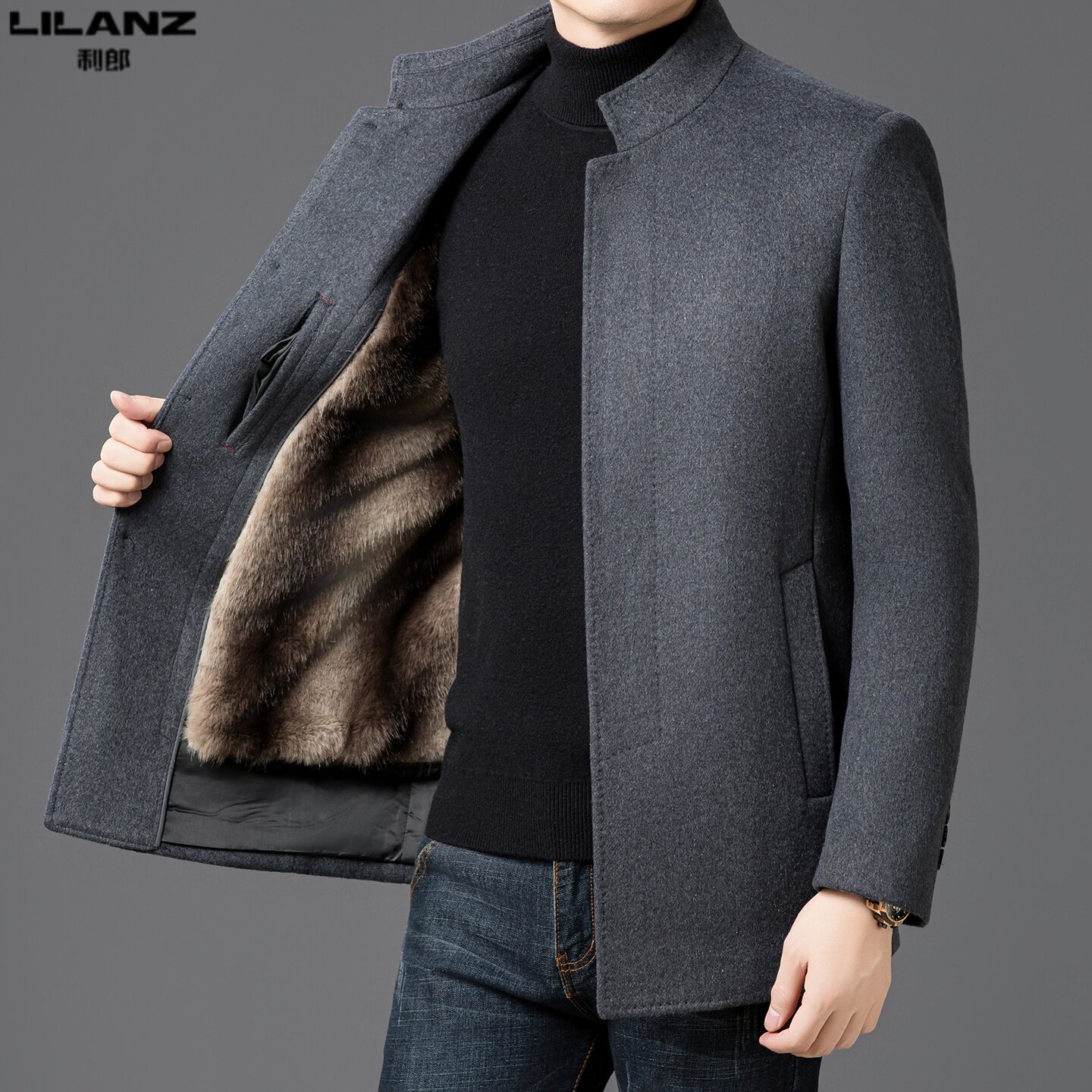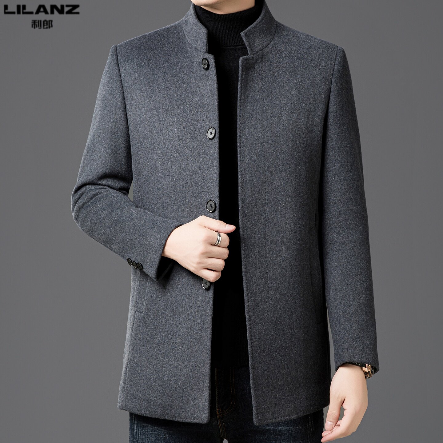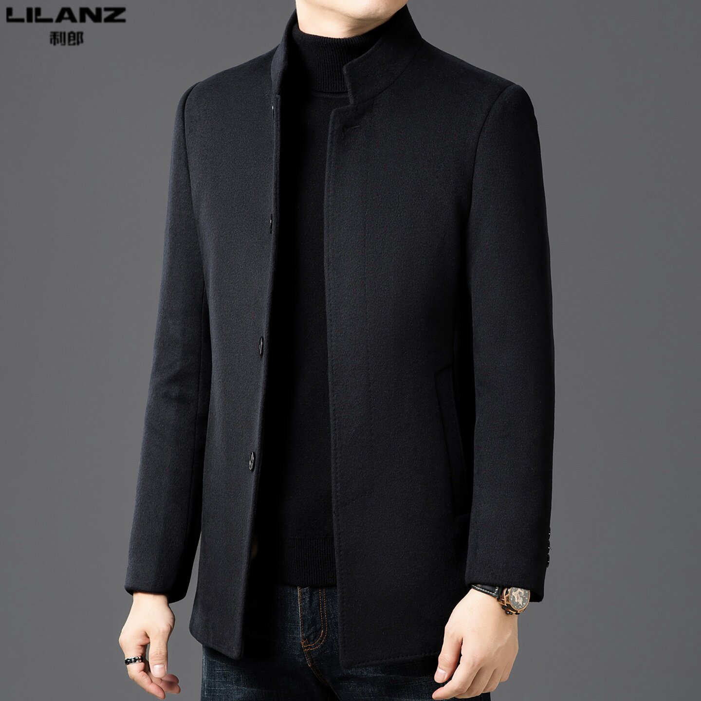 淘宝利郎男装毛呢夹克外套冬季保暖加绒羊毛大衣男士纯色立领休闲风衣