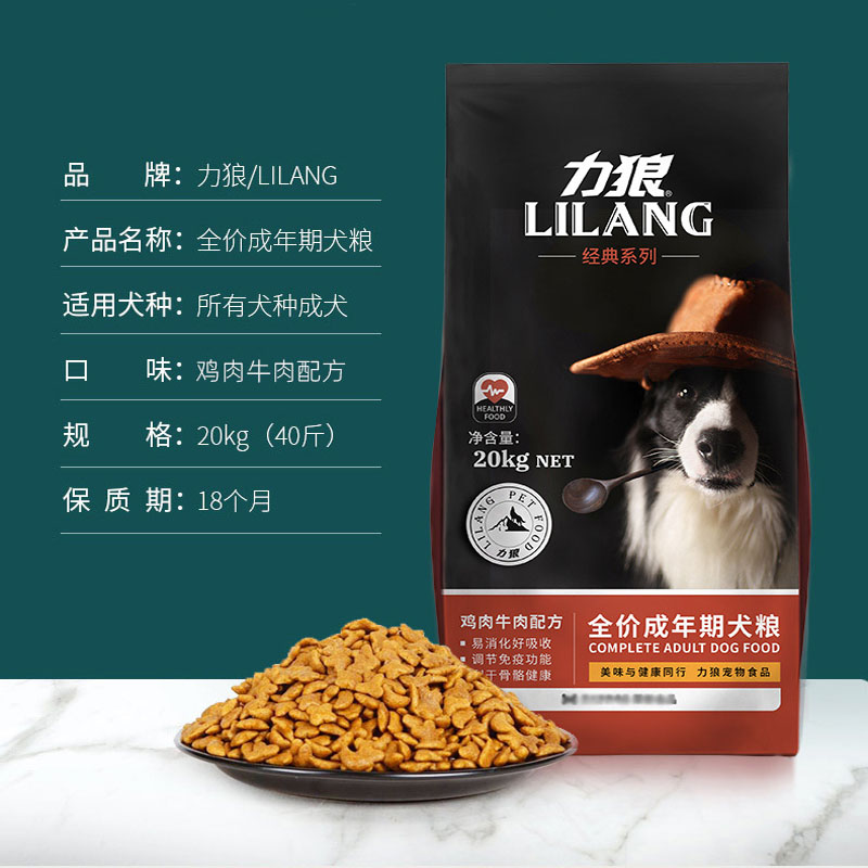 天猫力狼狗粮通用40斤装金毛萨摩耶拉布拉多马犬边牧专用中大型犬粮