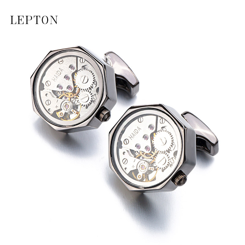 淘宝送礼盒新款时尚机械机芯袖扣盖玻璃品位男士法式衬衫专用袖扣饰品